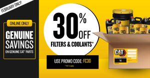 use code FC30 to avail 30% off on GENUINE Cat® filters & Coolants!