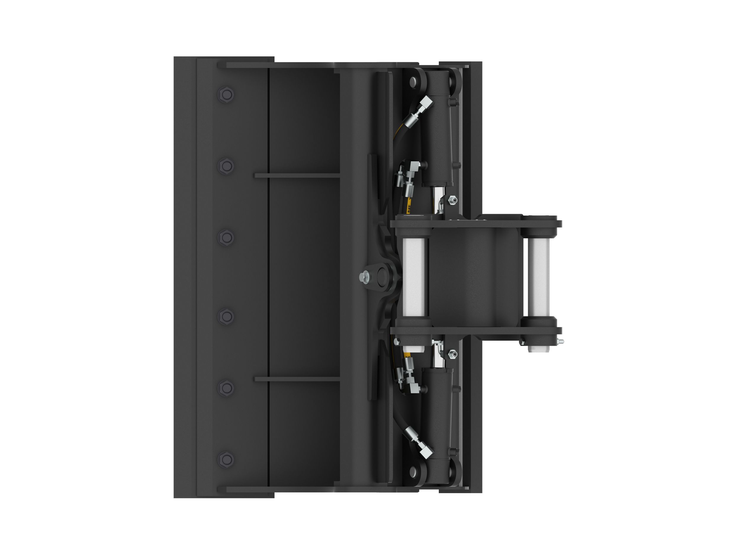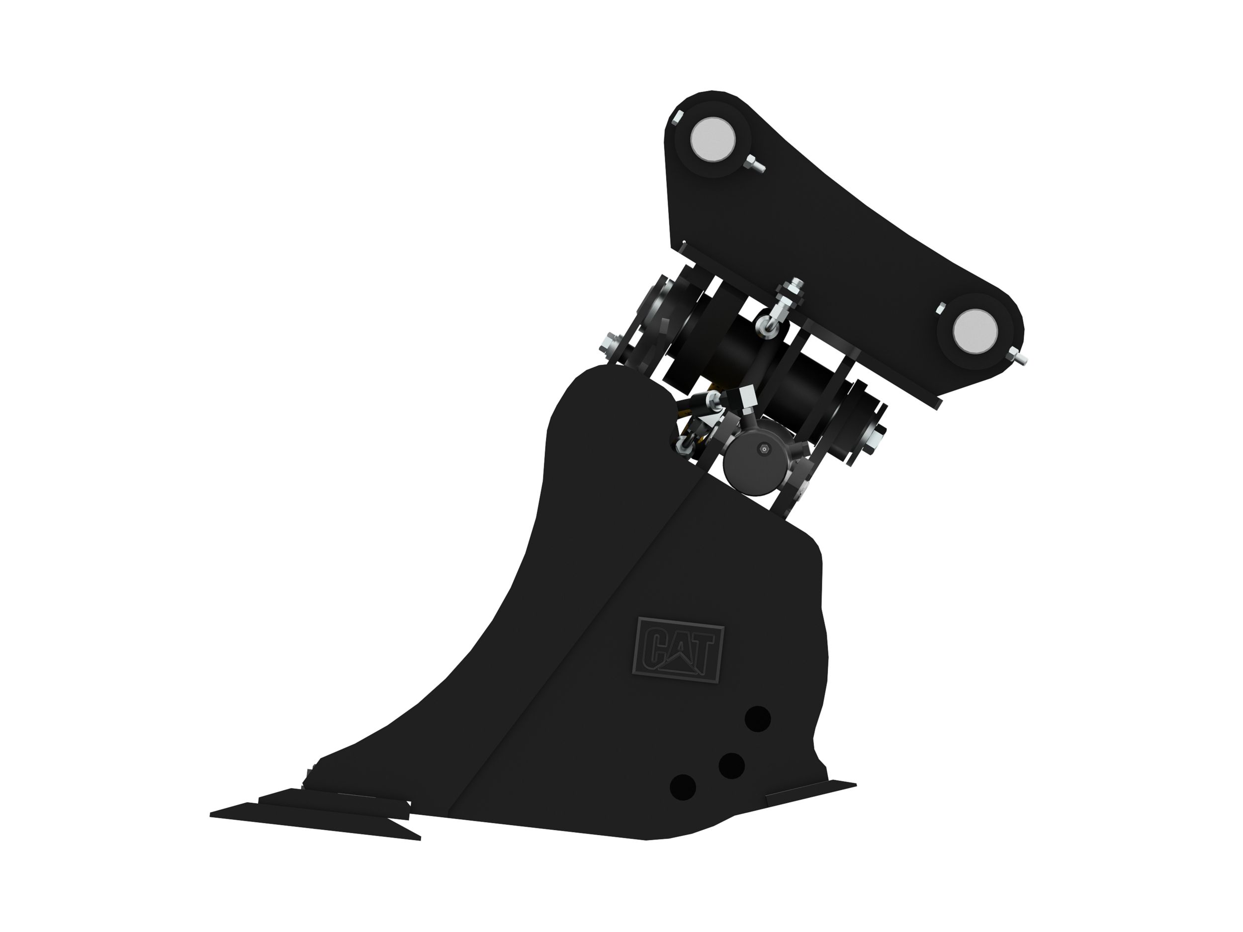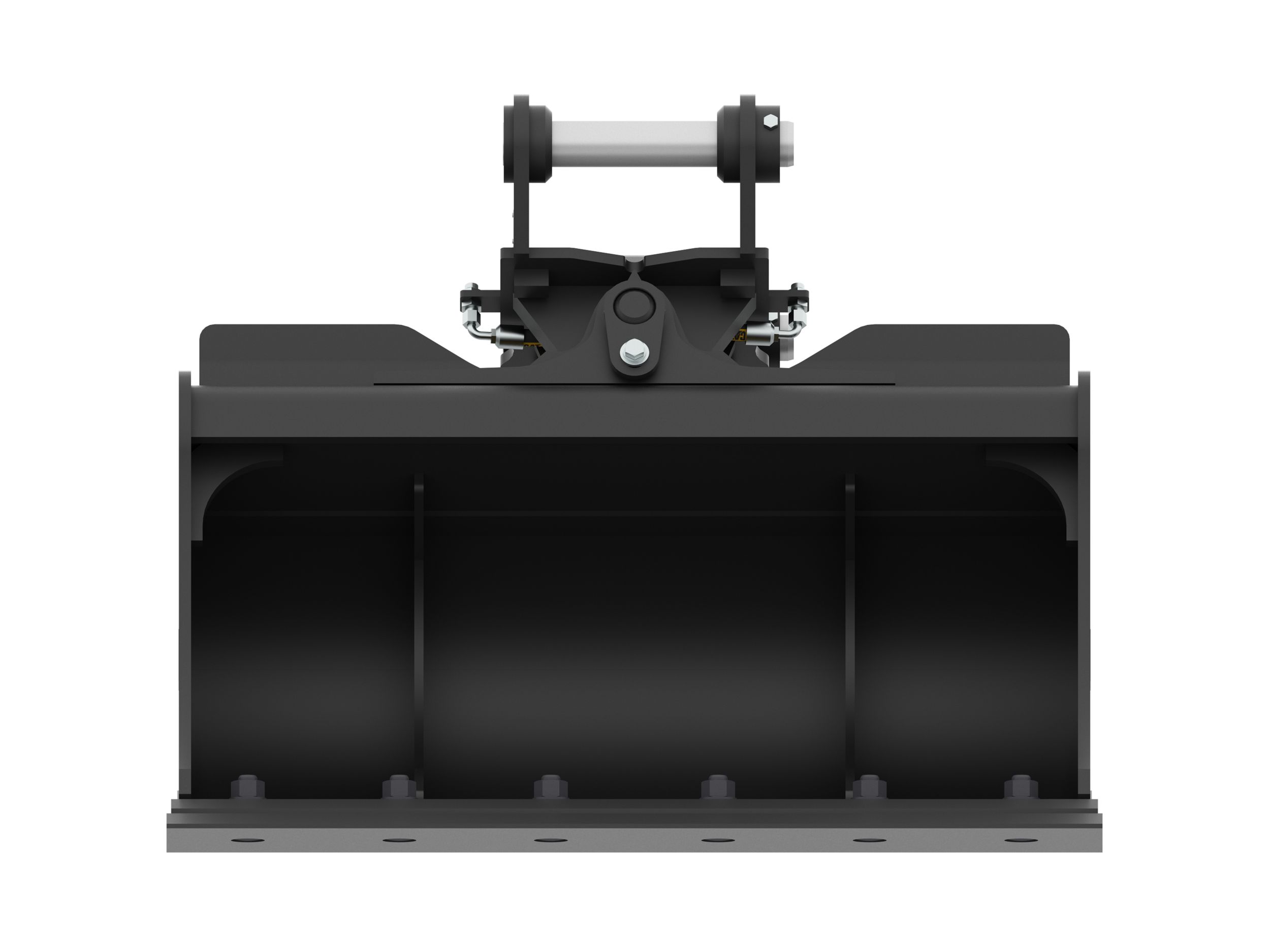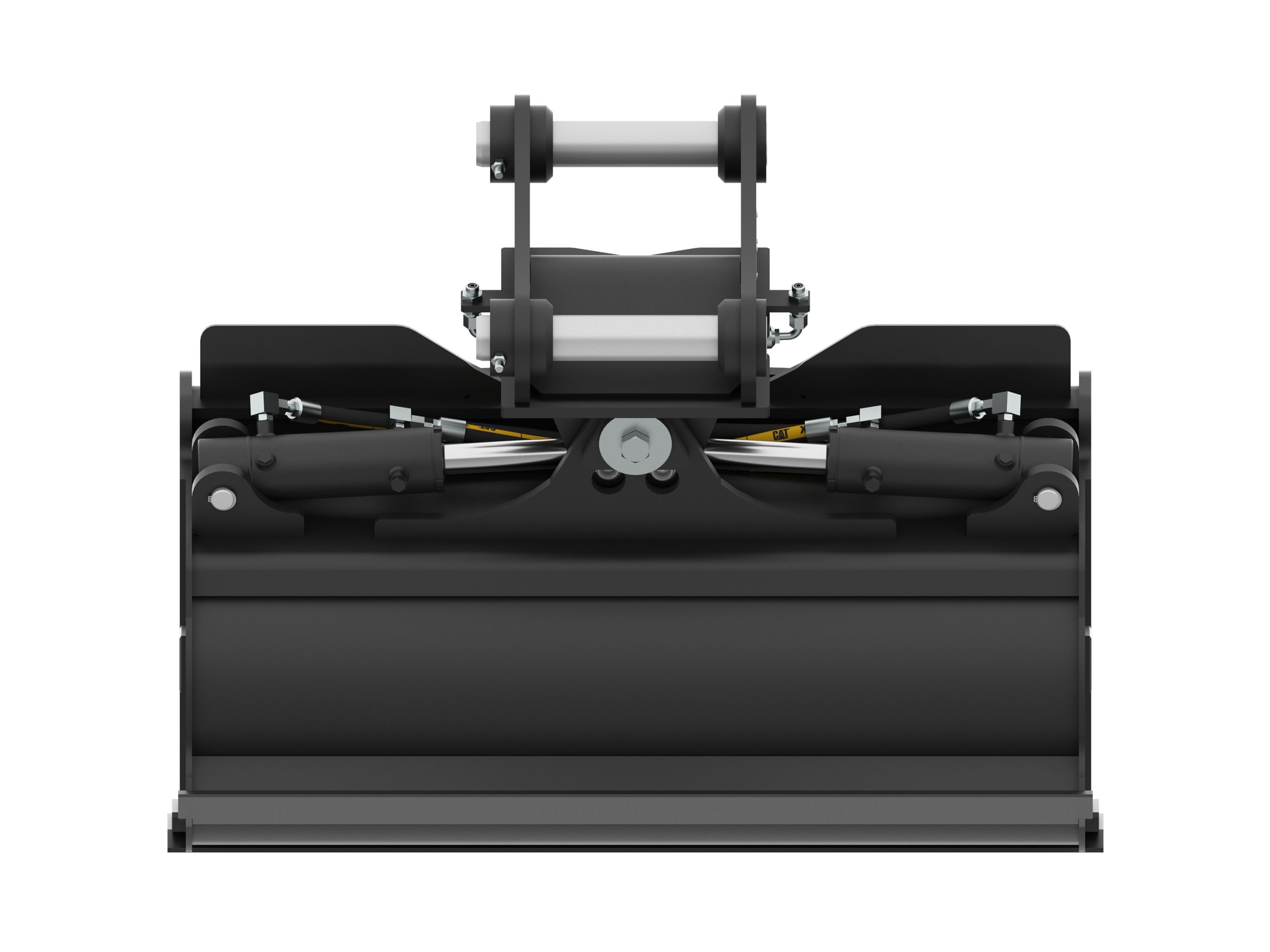 Dual horizontally positioned hydraulic cylinders provide short, smooth cycle times and maximize tilt momentum. The bucket can tilt 45 degrees left or right of center.