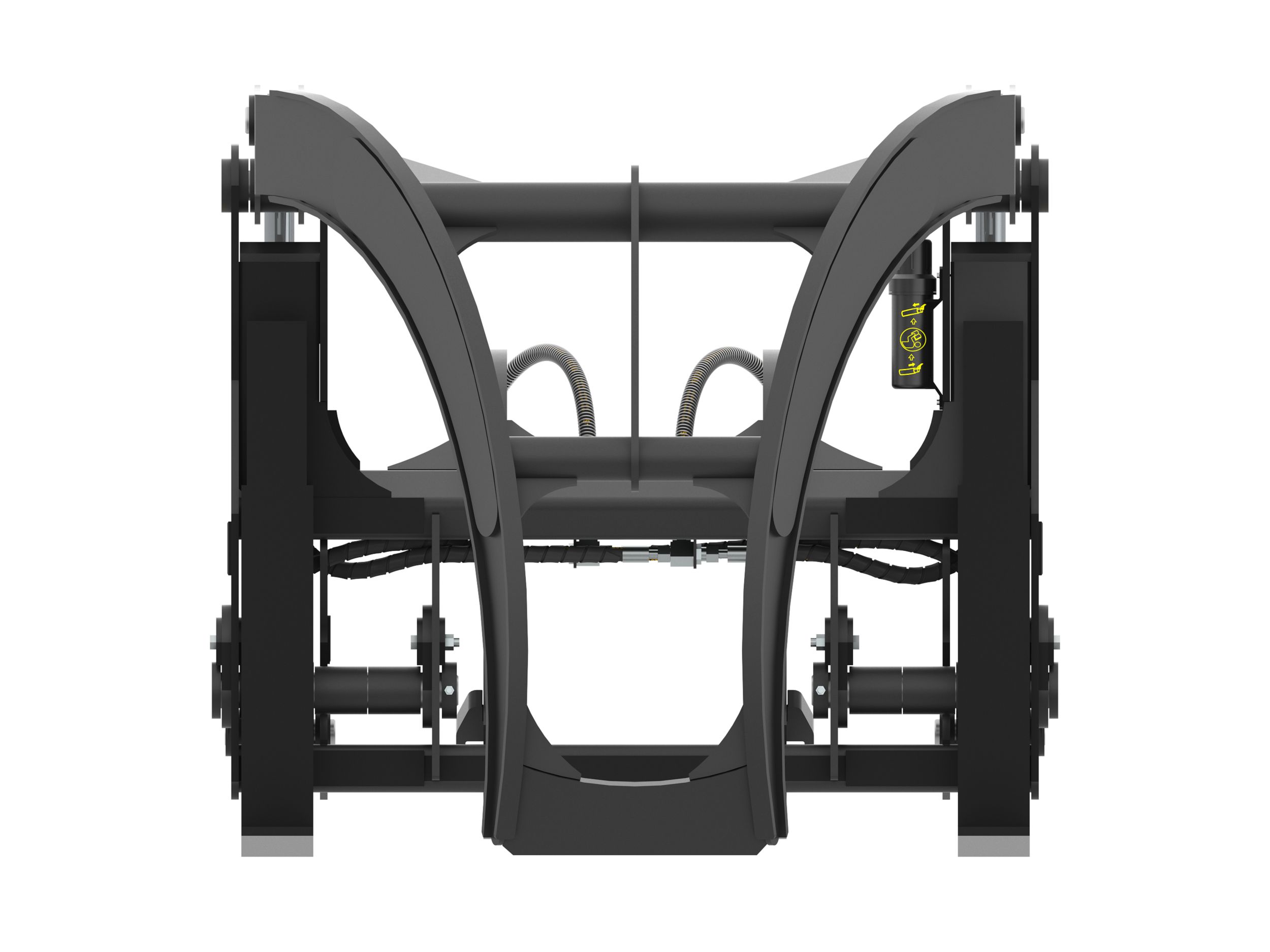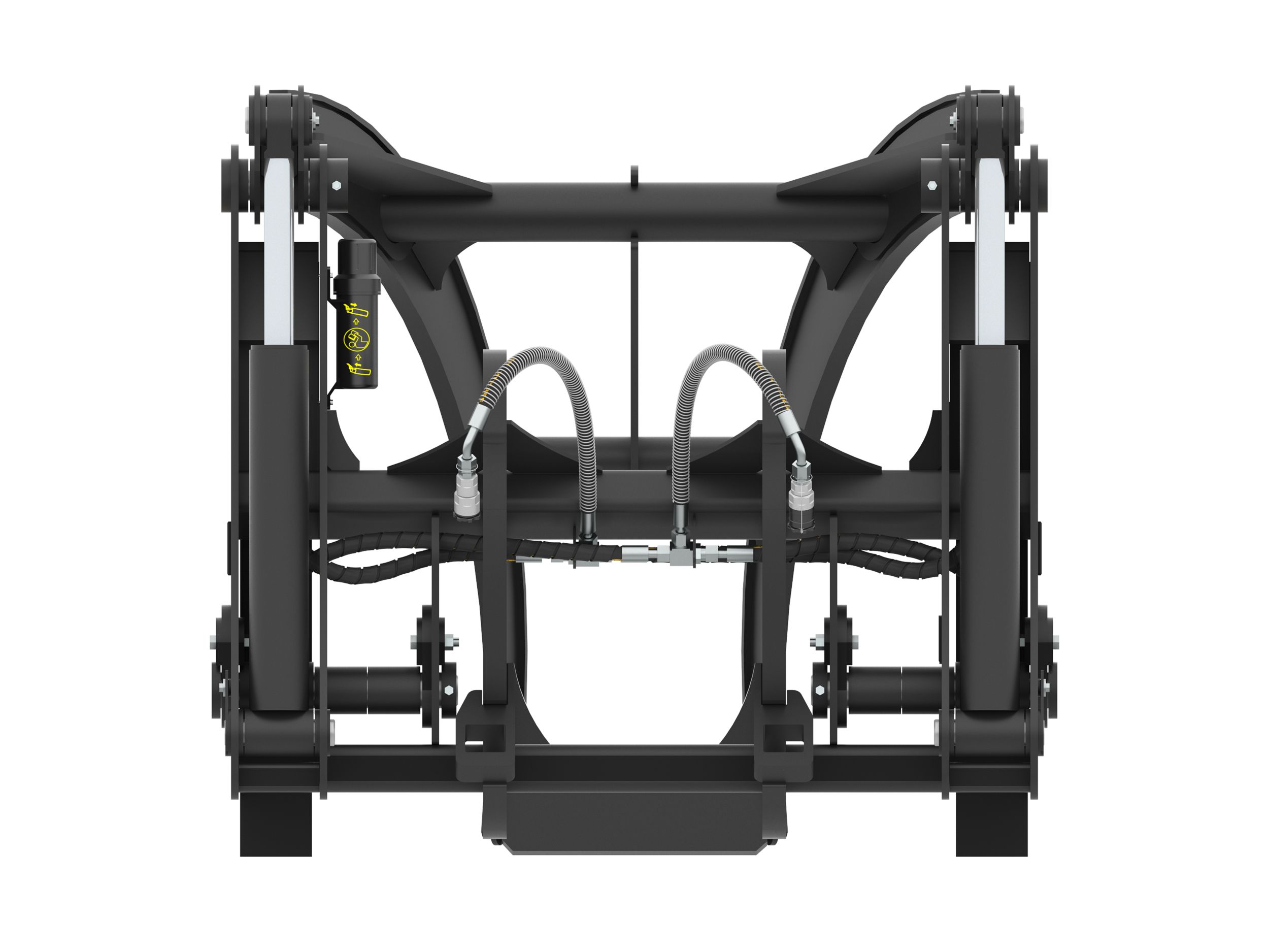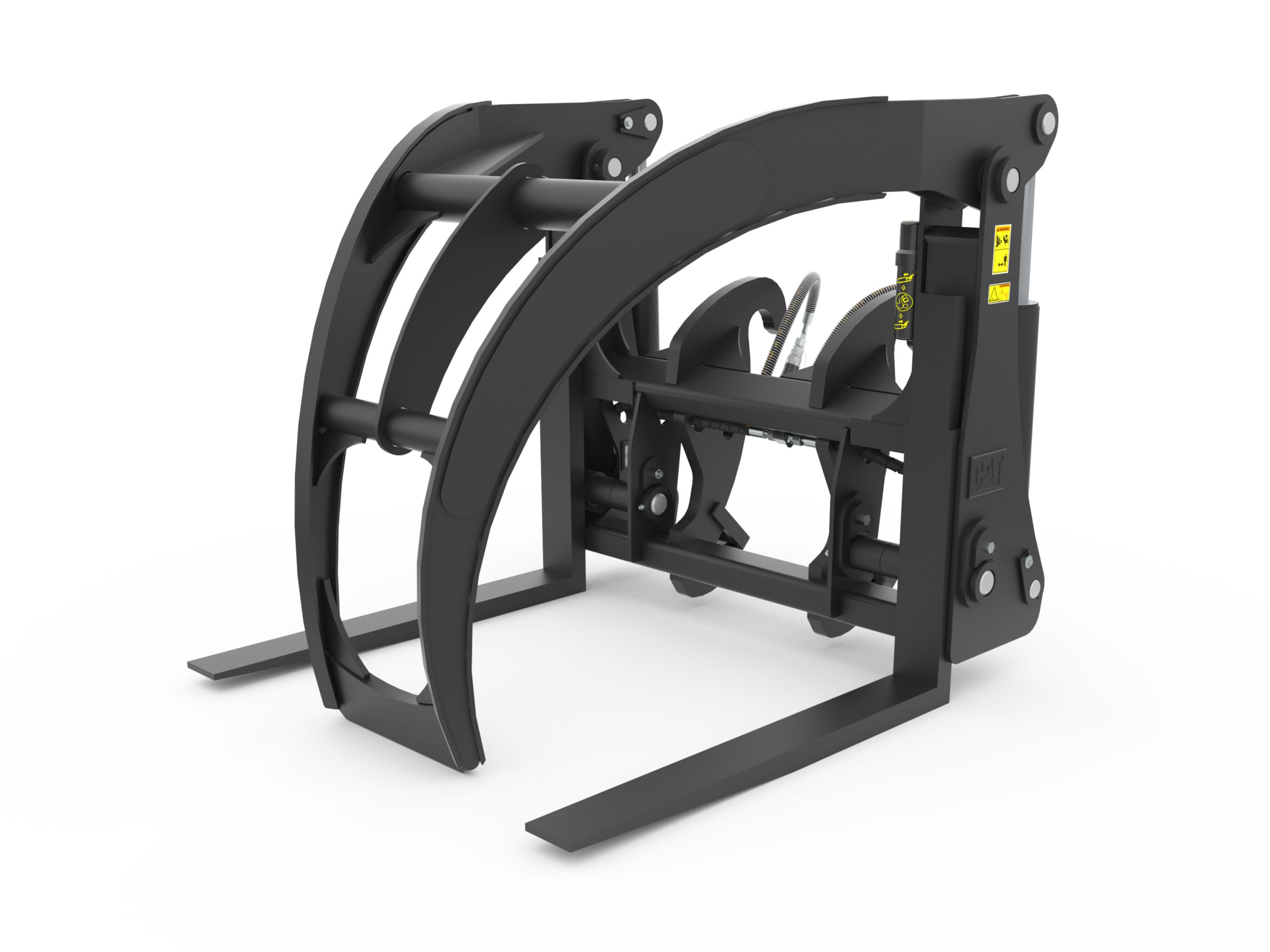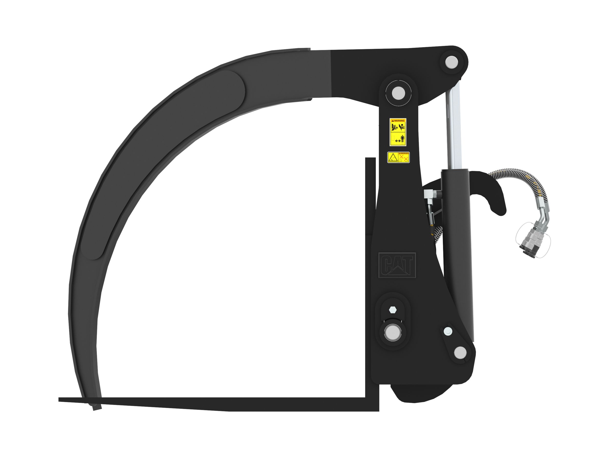 Narrow top clamp is designed to close between the tines, which would allow the operator to clamp tightly on a single log.