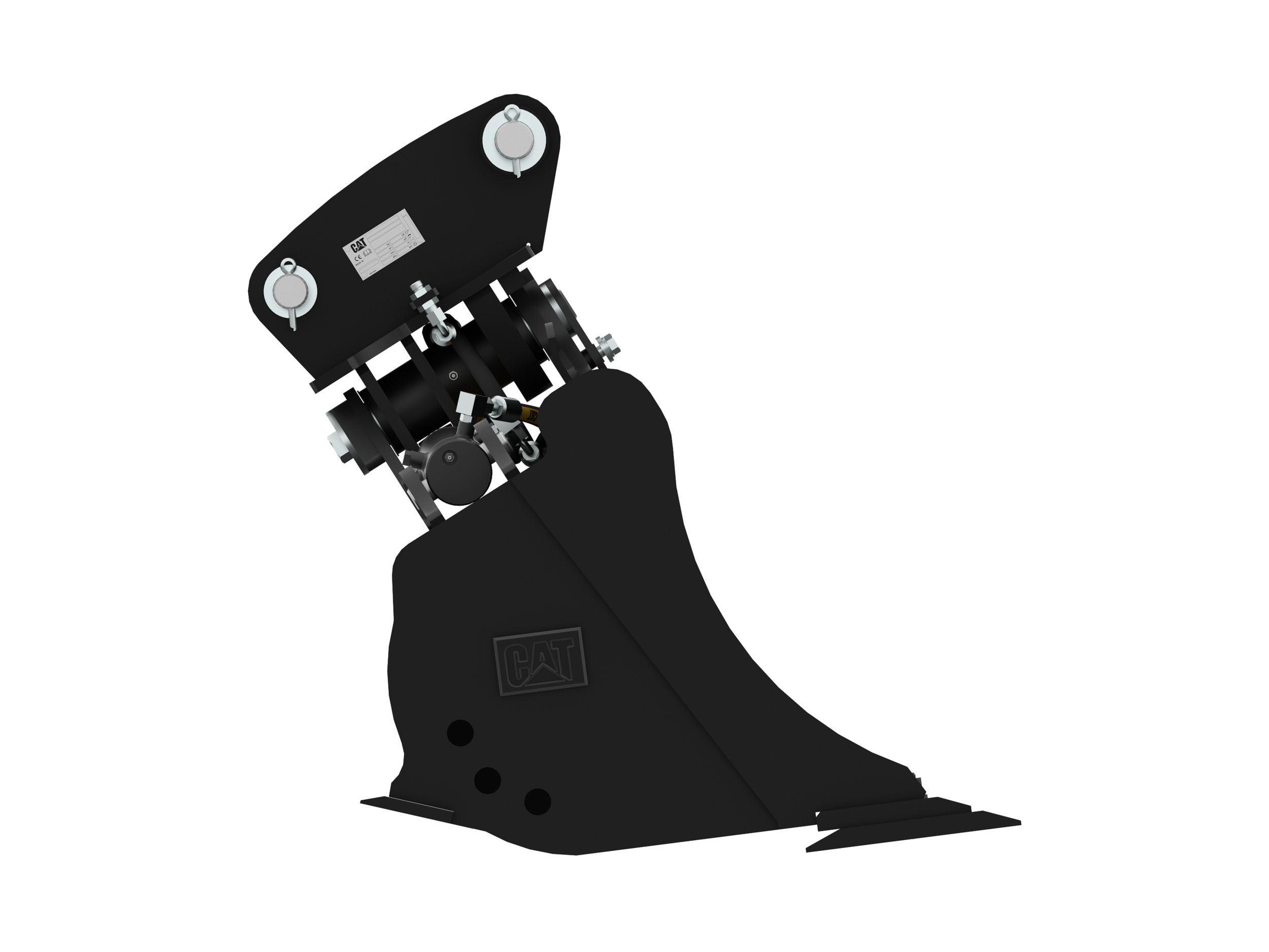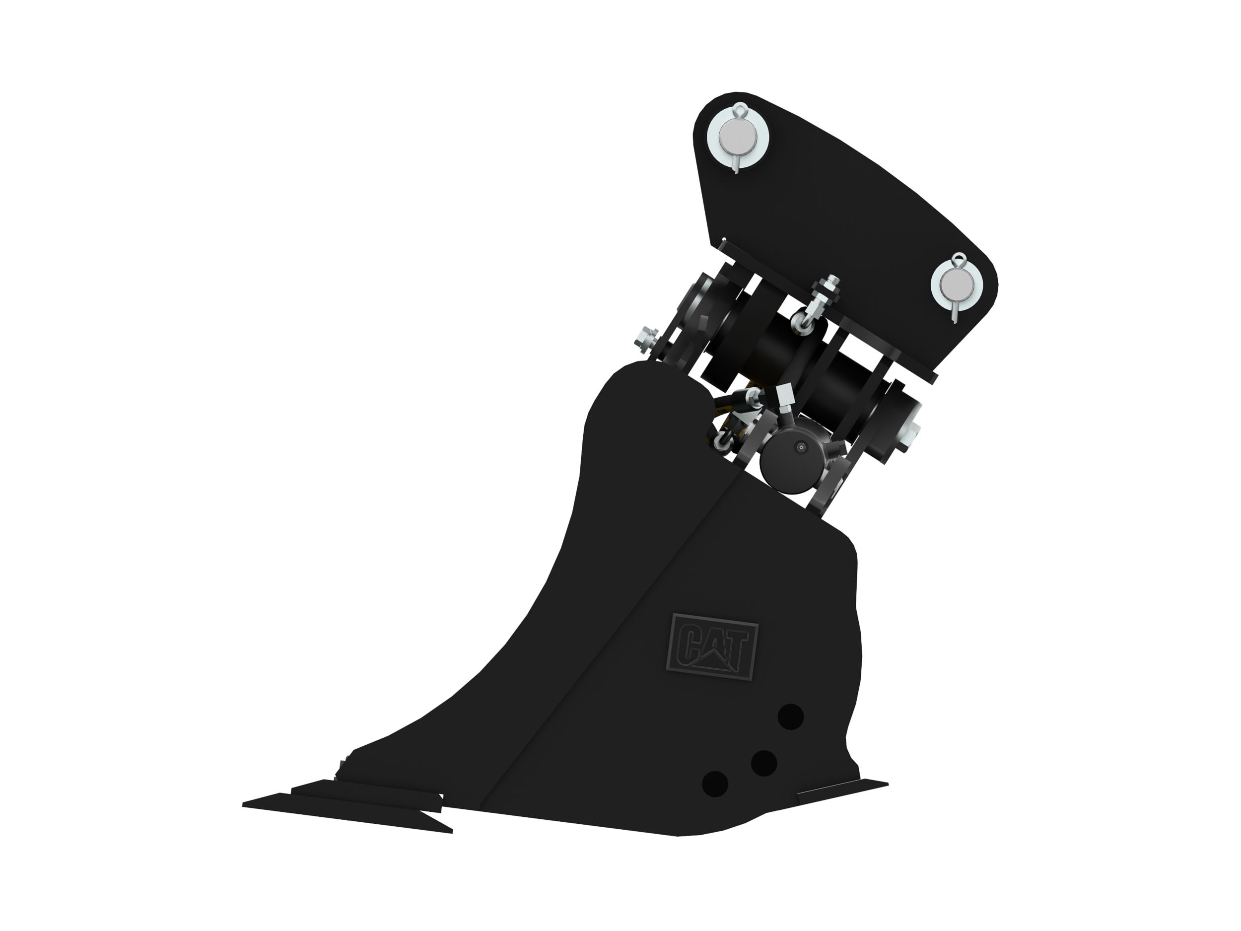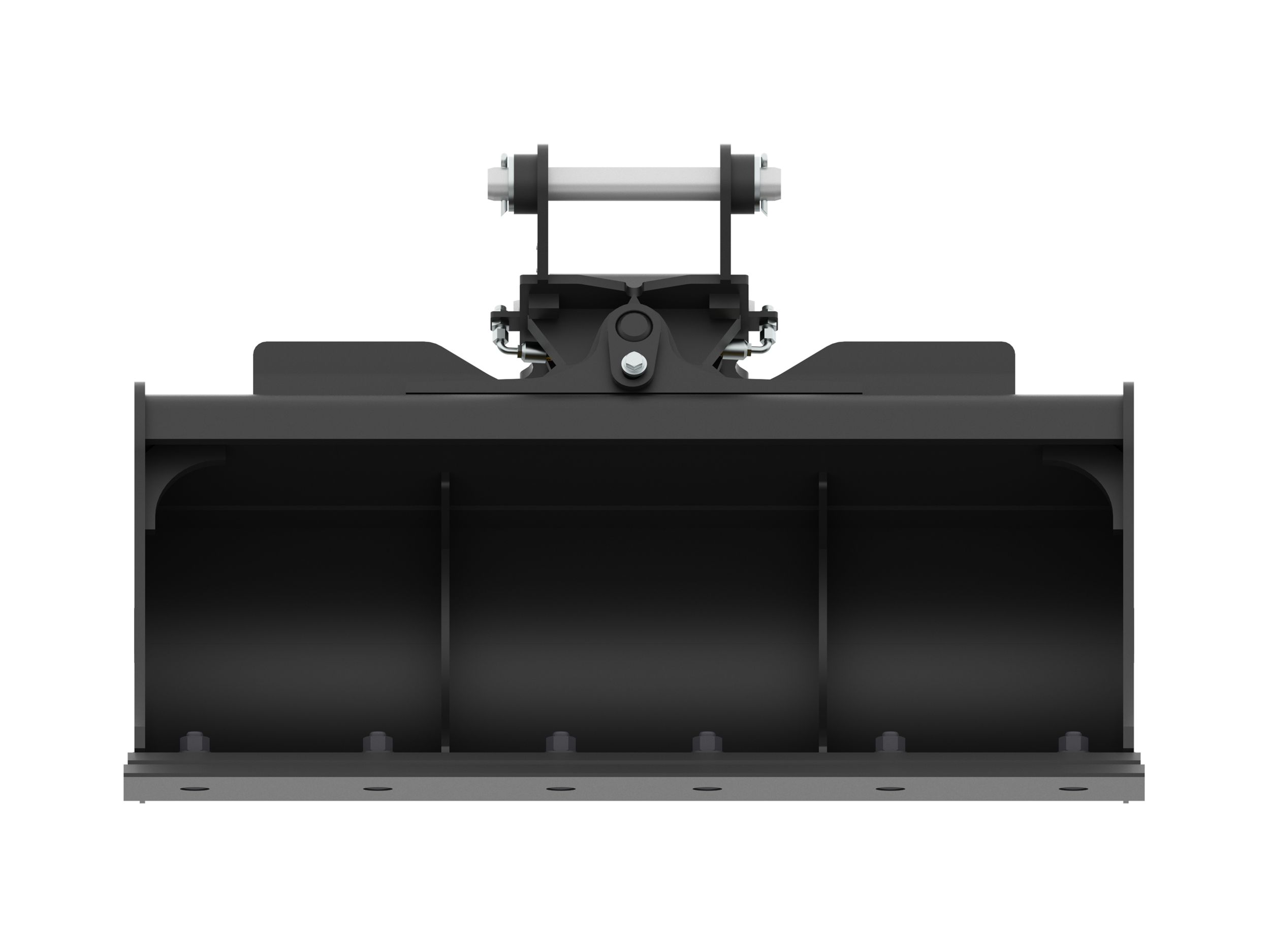 Dual horizontally positioned hydraulic cylinders provide short, smooth cycle times and maximize tilt momentum. The bucket can tilt 45 degrees left or right of center.