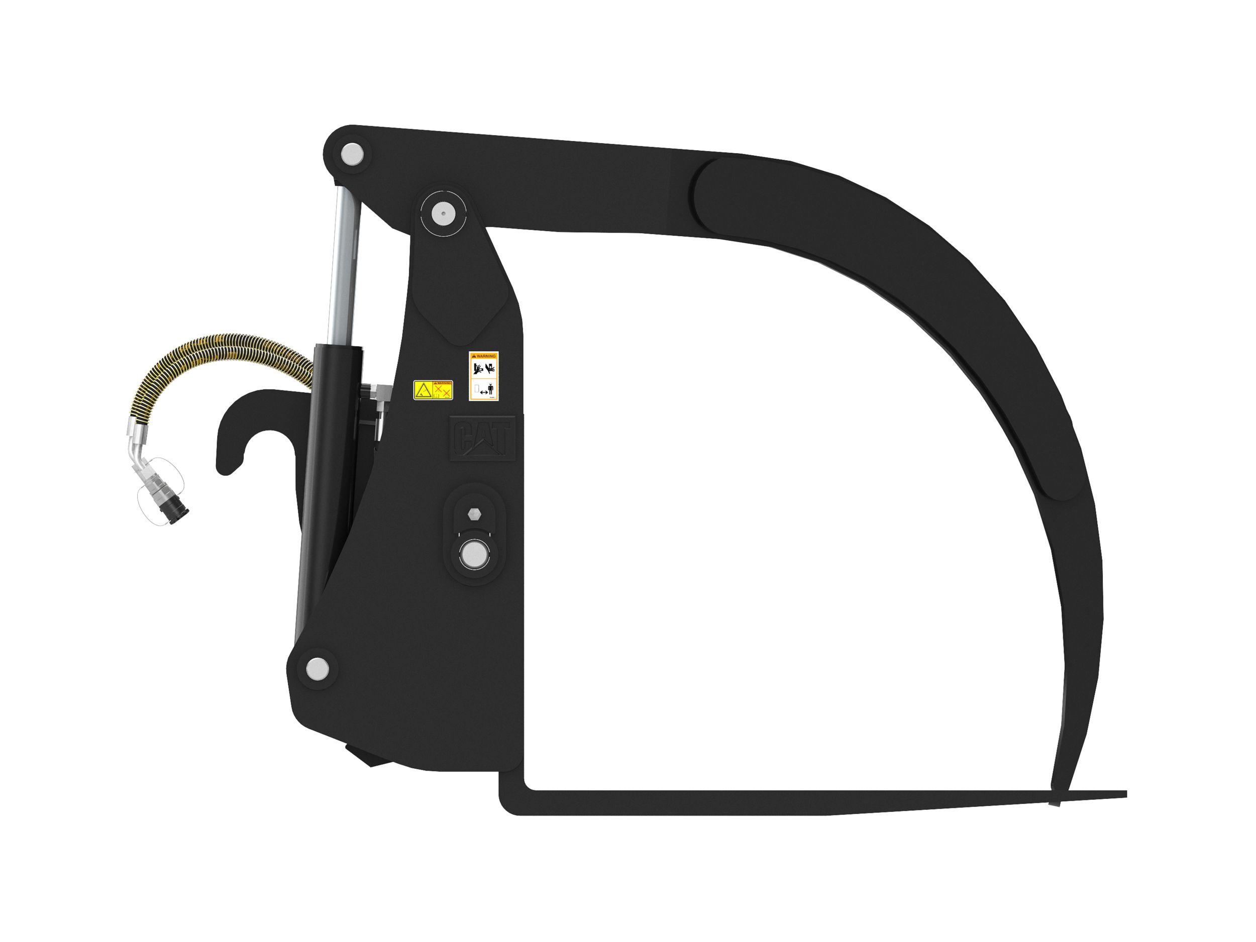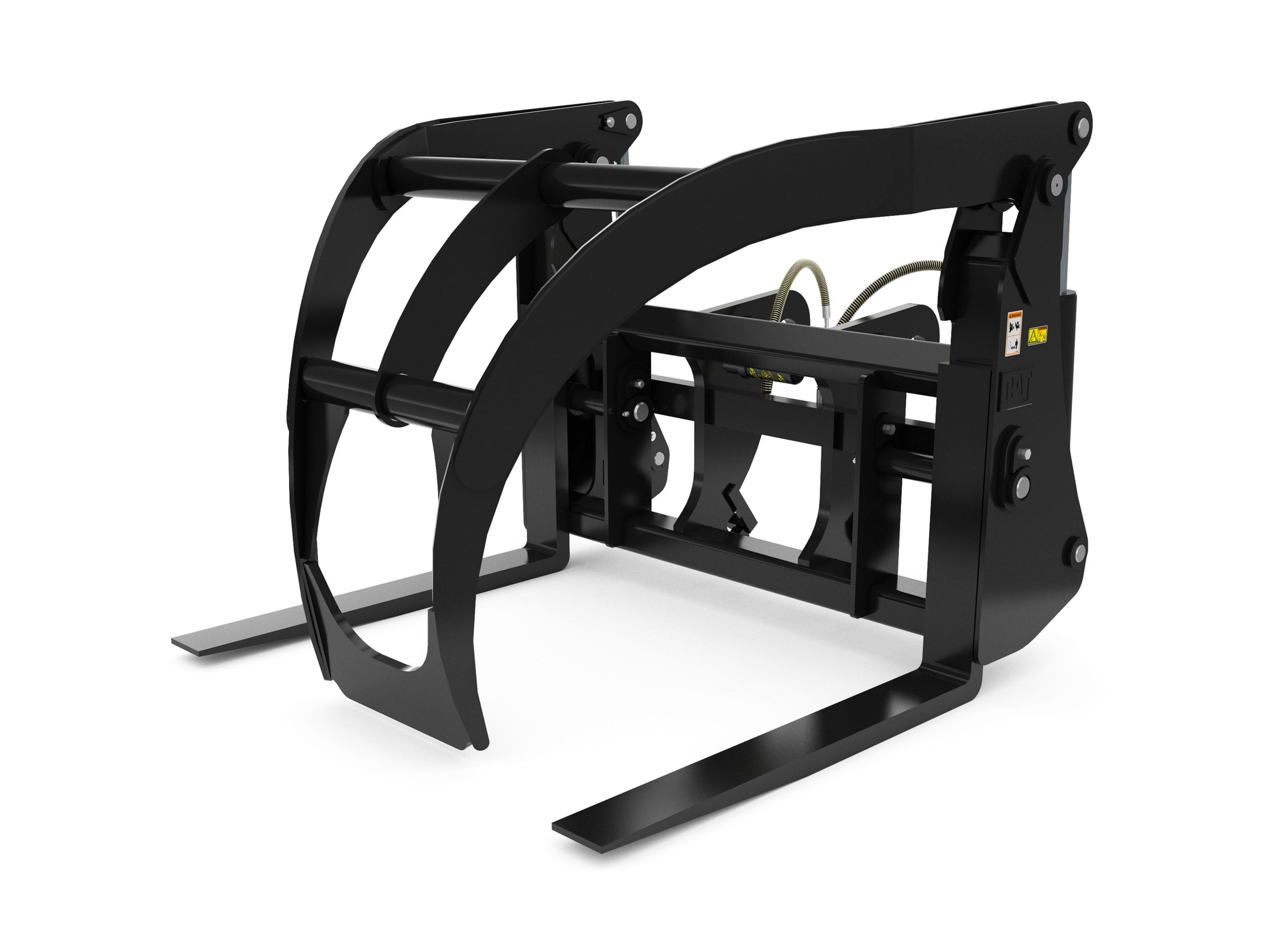 Narrow top clamp is designed to close between the tines, which would allow the operator to clamp tightly on a single log.