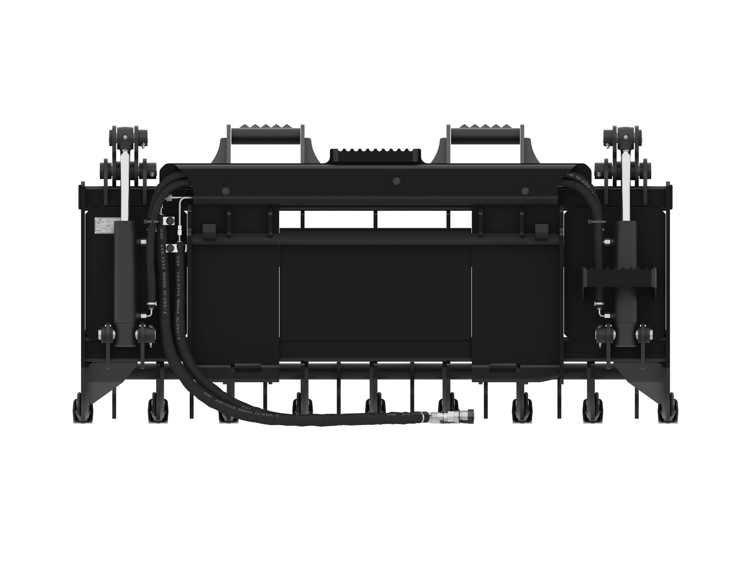 Heavy duty serrated push bars can be used to tip or push debris.