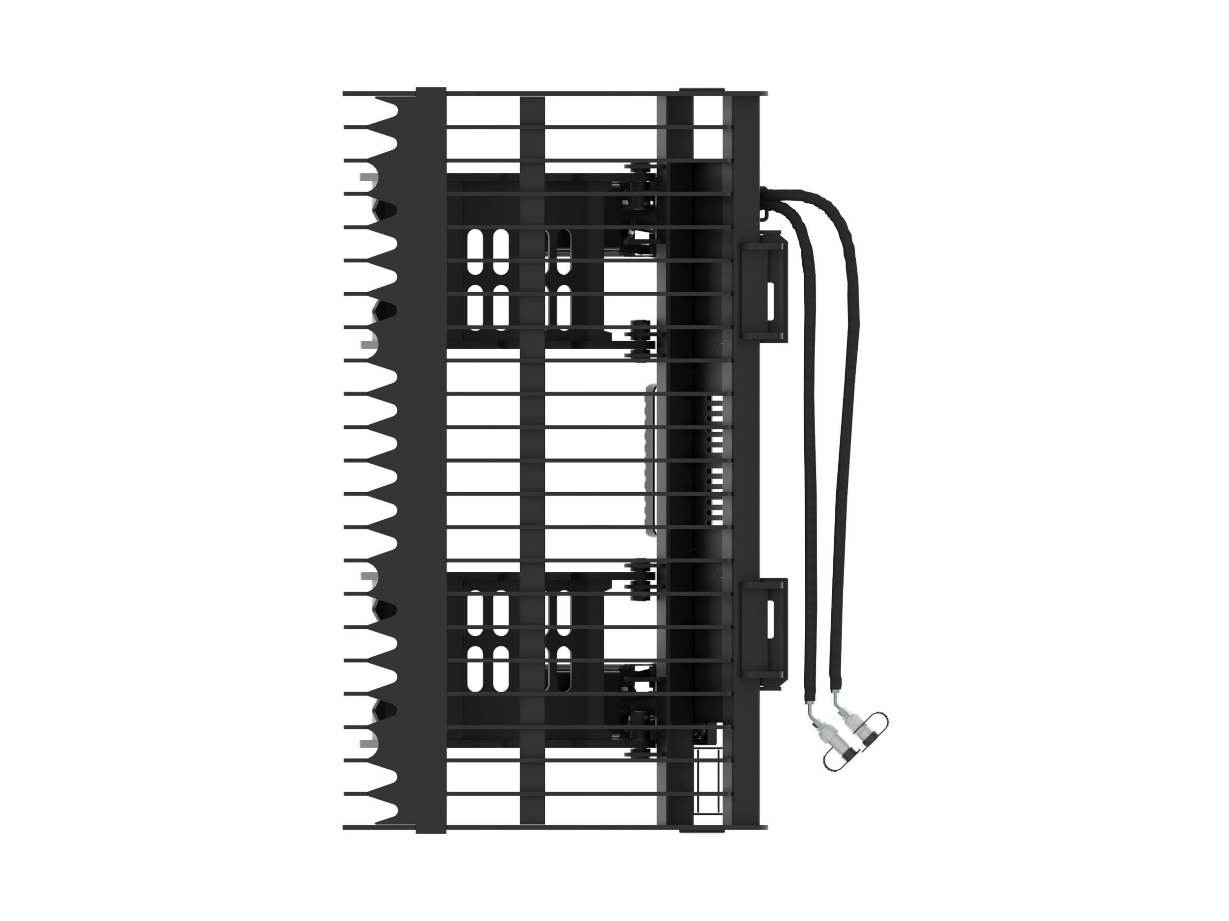 Heavy duty guarding over the hydraulic cylinders, hoses, and tubes for better protection.