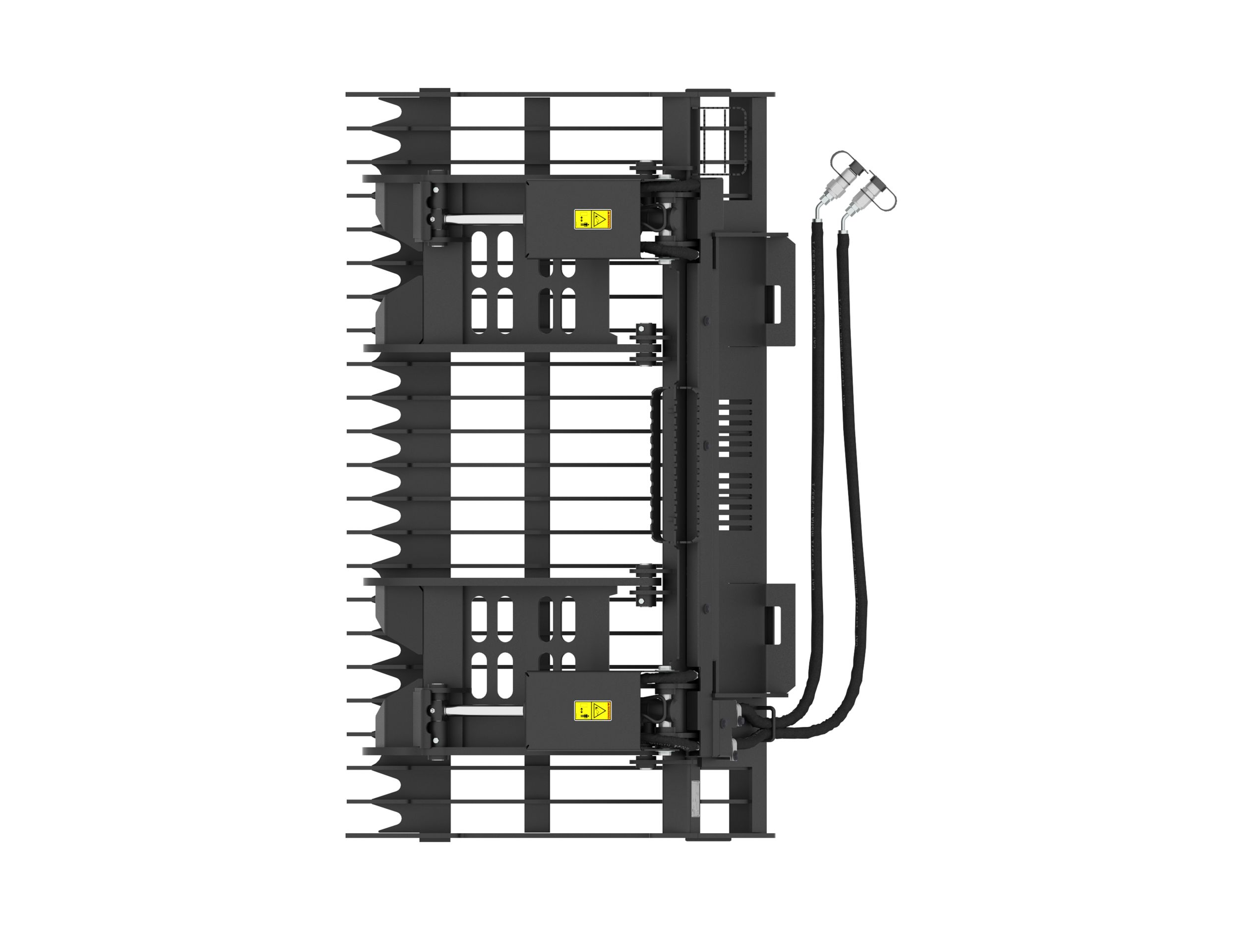 Optimized tine spacing provides best working visibility across the tool. Visibility slots on the rear of the bucket also helps to increase the operators view of the working area of the clamps.