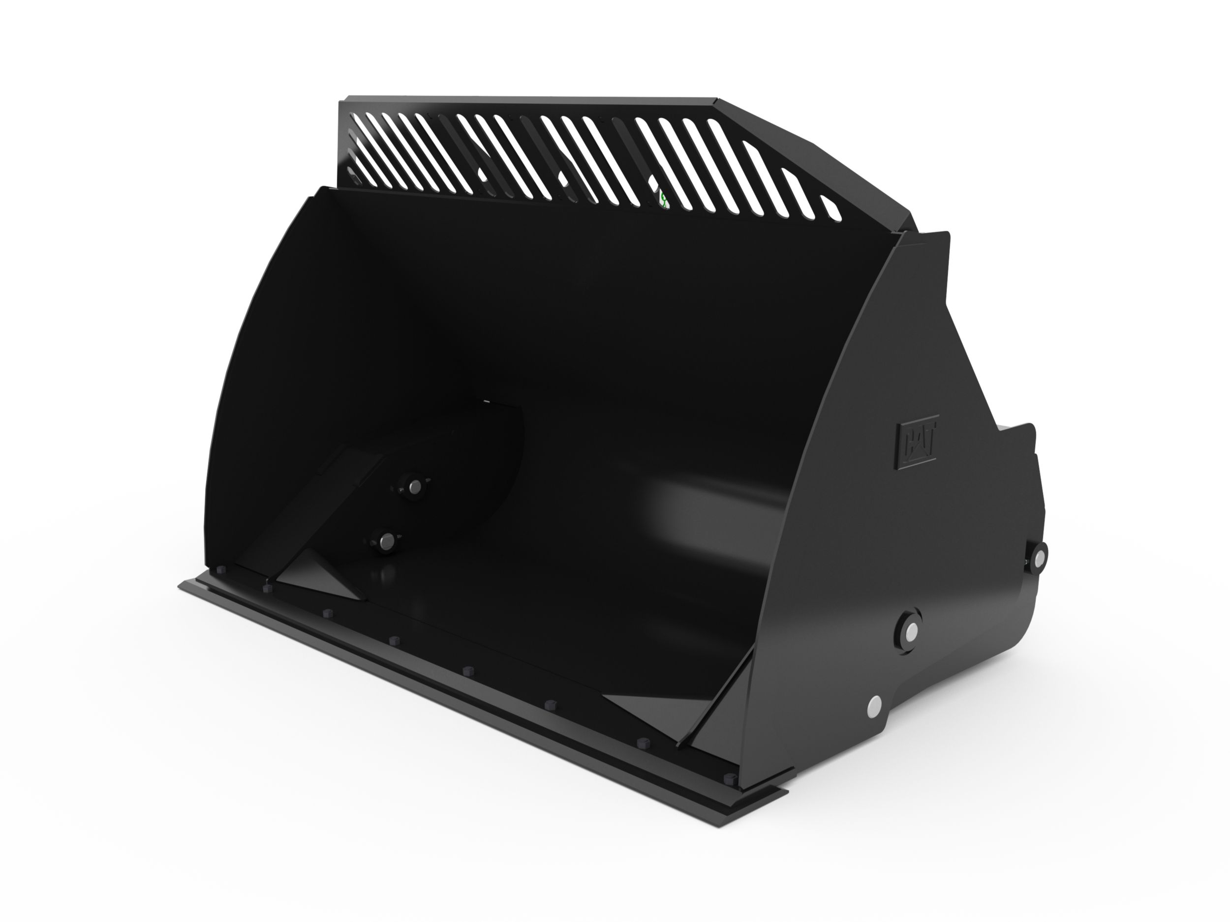 Diverts overflow away from hinge pins, lift arms, hydraulic cylinders and tilt sensors which helps to protect the machine from damage. Also creates good forward visibility for the operator.
