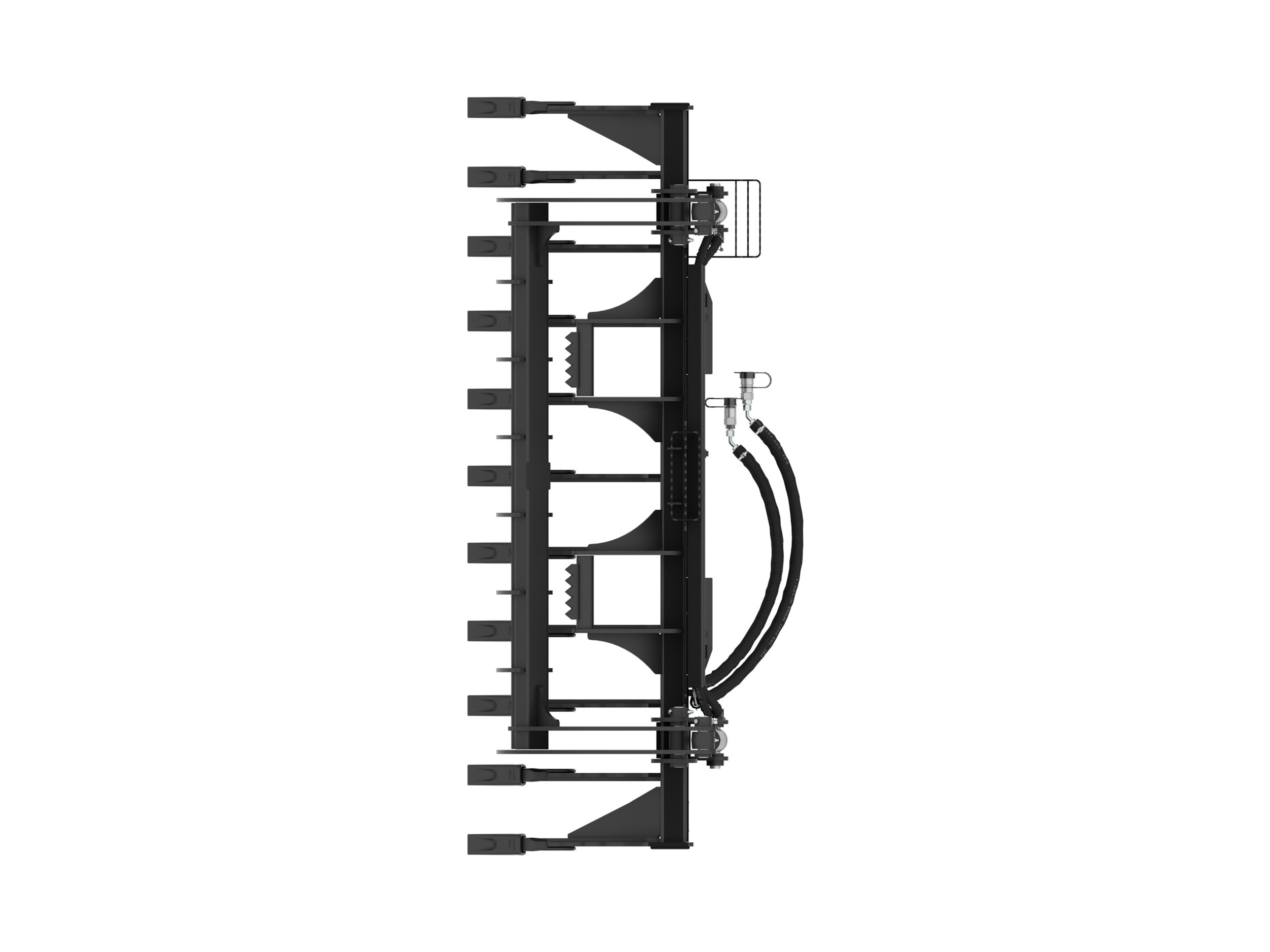 Serrations on the grapple and the tines help to ensure retention of larger objects and debris.
