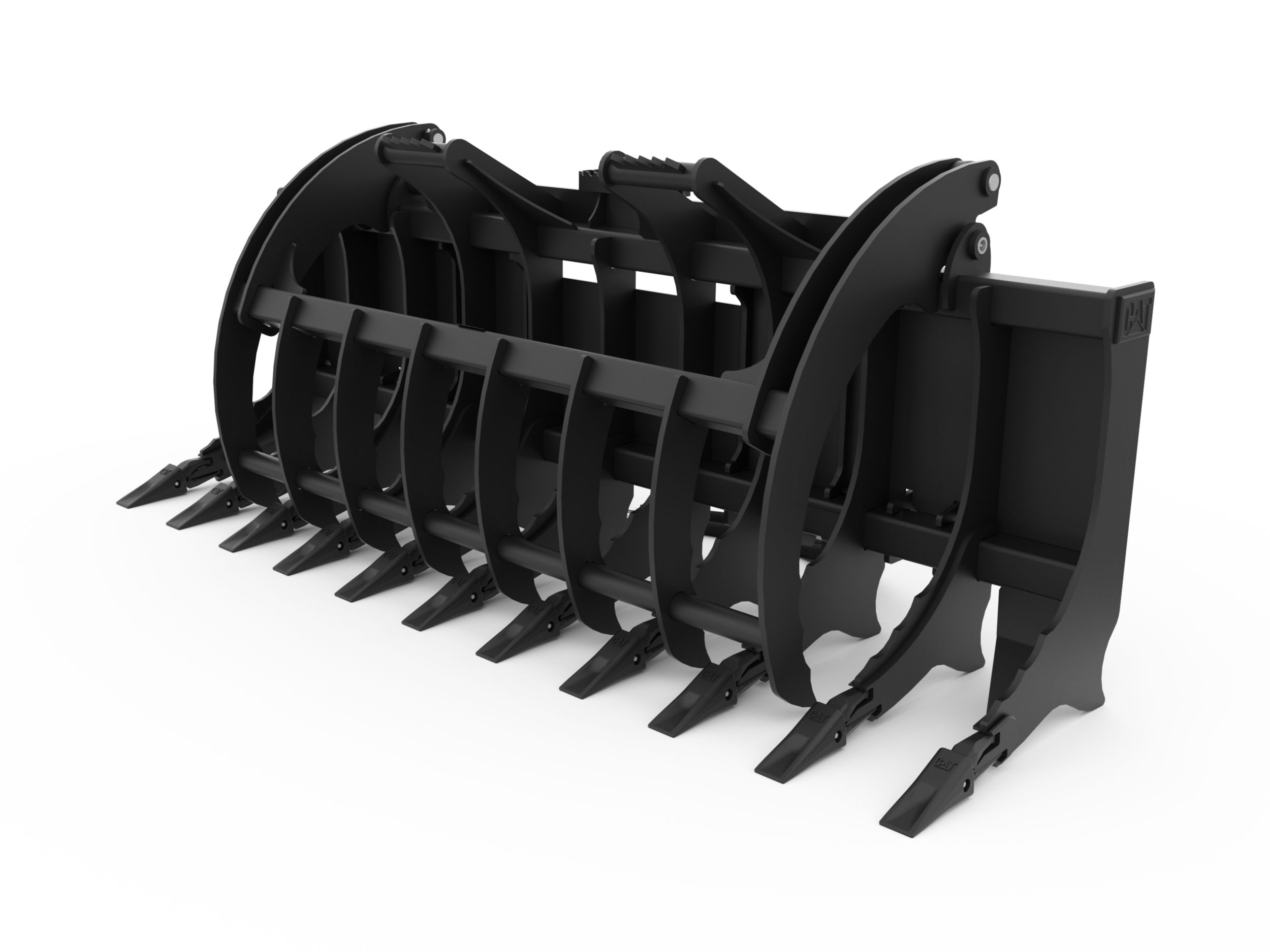 Serrations on the grapple and the tines help to ensure retention of larger objects and debris.