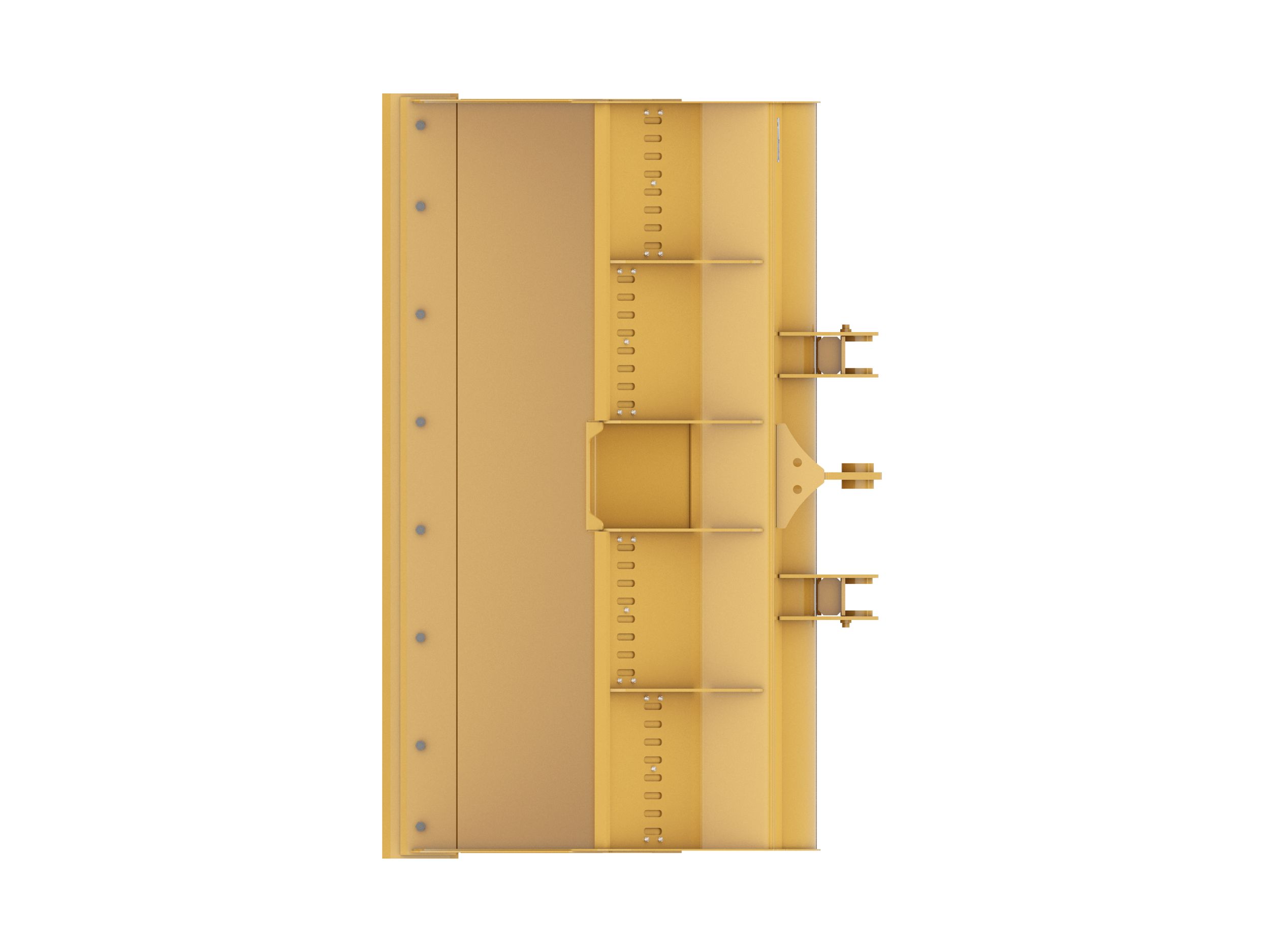 Integrated visibility to the cutting edge while operating. Visibility slots can be closed while working with loose material with small particle sizes to increase capacity and prevent material loss.
