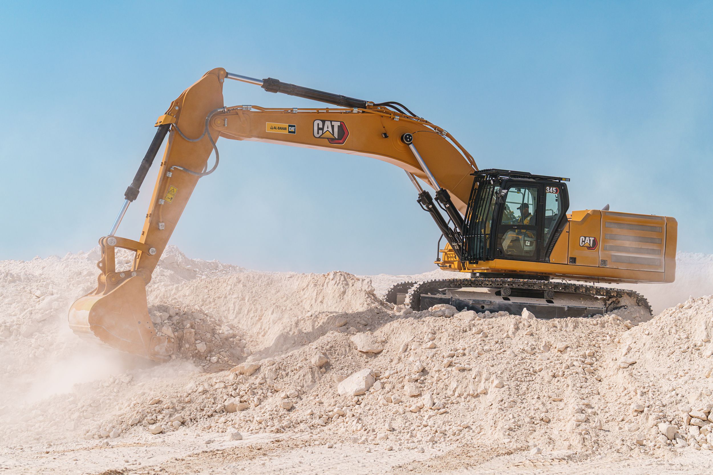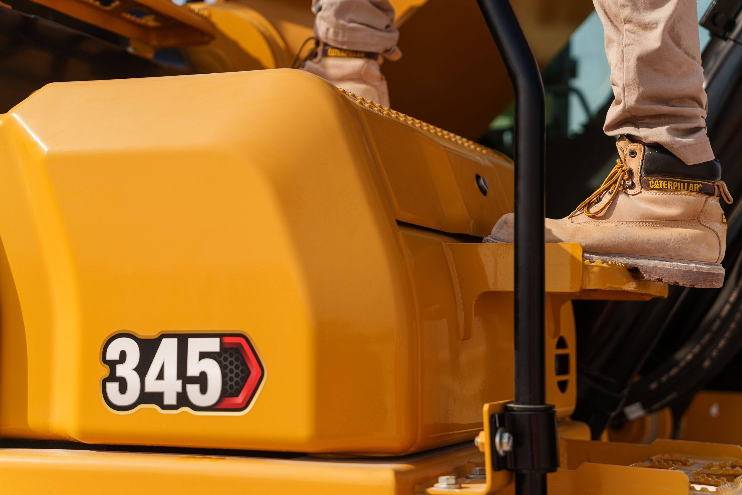 - Sites where excavators work are typically rugged and challenging. That’s why it’s important that the 345 cab helps protect the operator as much as possible from fatigue, stresses, sounds, and temperatures of the job.