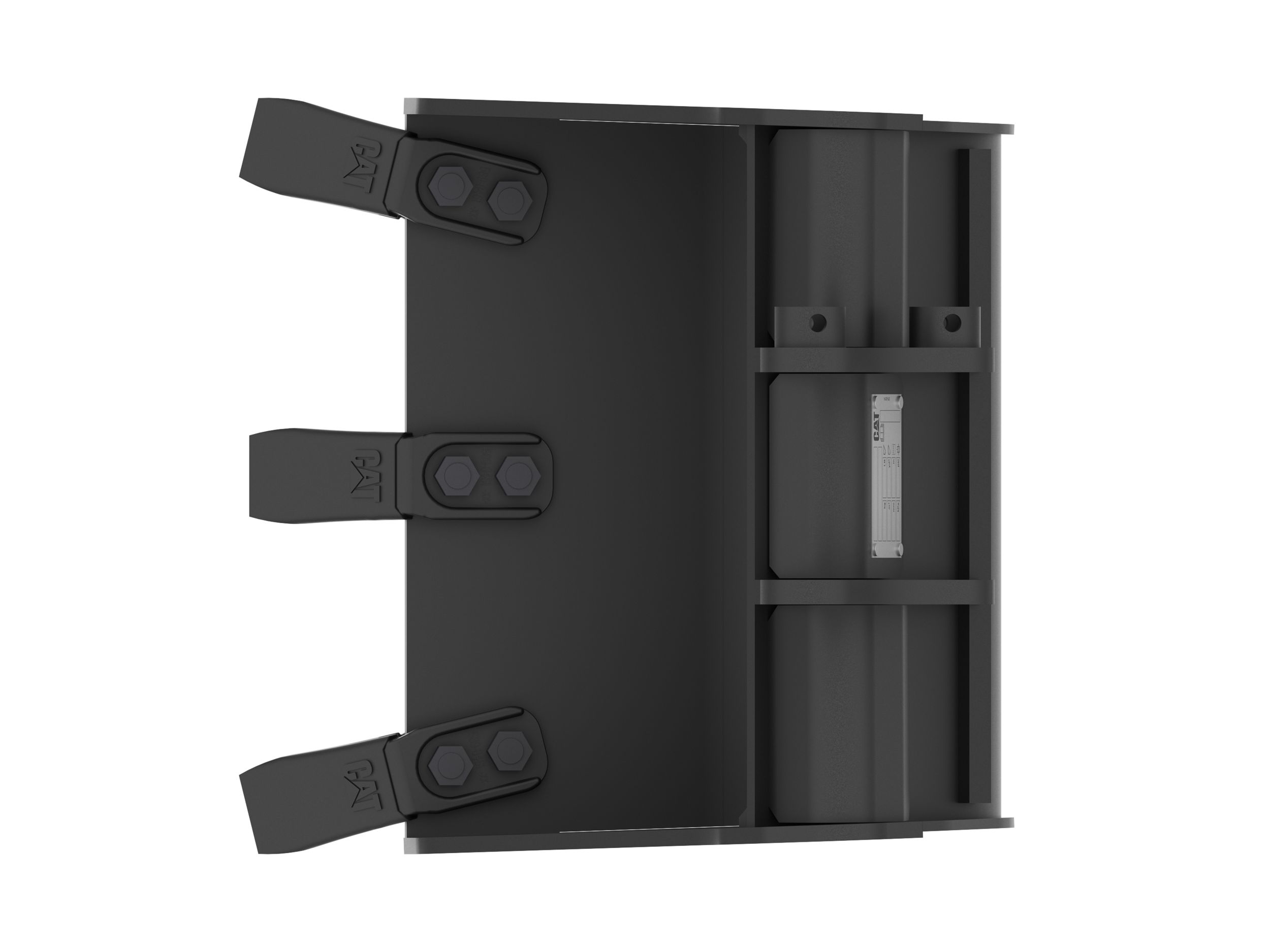 Two bolts per tooth for optimal positioning and installation on the base edge. Two stiffeners on the top strap resists bending while receiving breakout forces and protects the locking bolts from wear and shearing off.