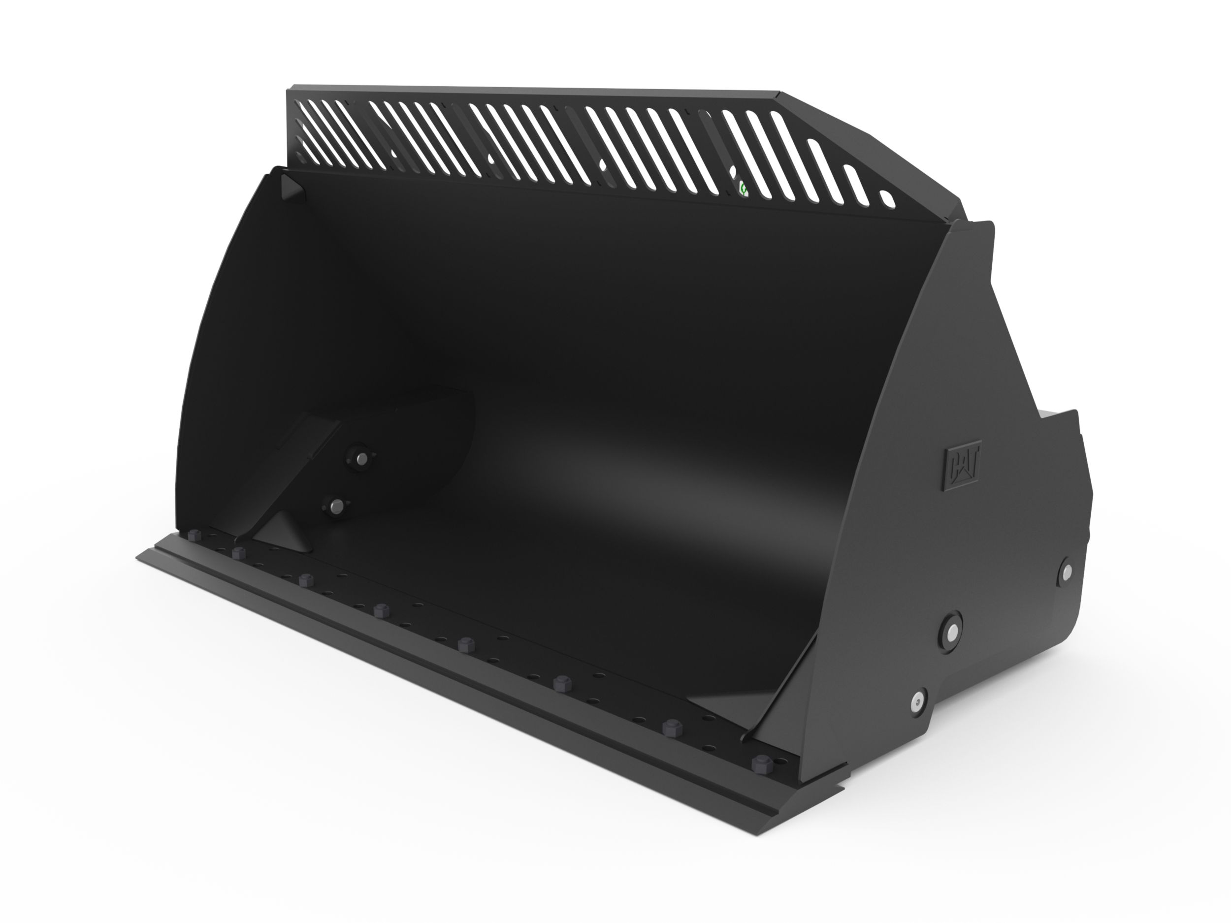 Shaped corners divert overflow from hinge pins, lift arms, hydraulic cylinders and tilt sensors helping to protect the hydraulics and machine from damage. Follows the heaped material pile form creating good forward visibility avoiding corner damage when dumping.