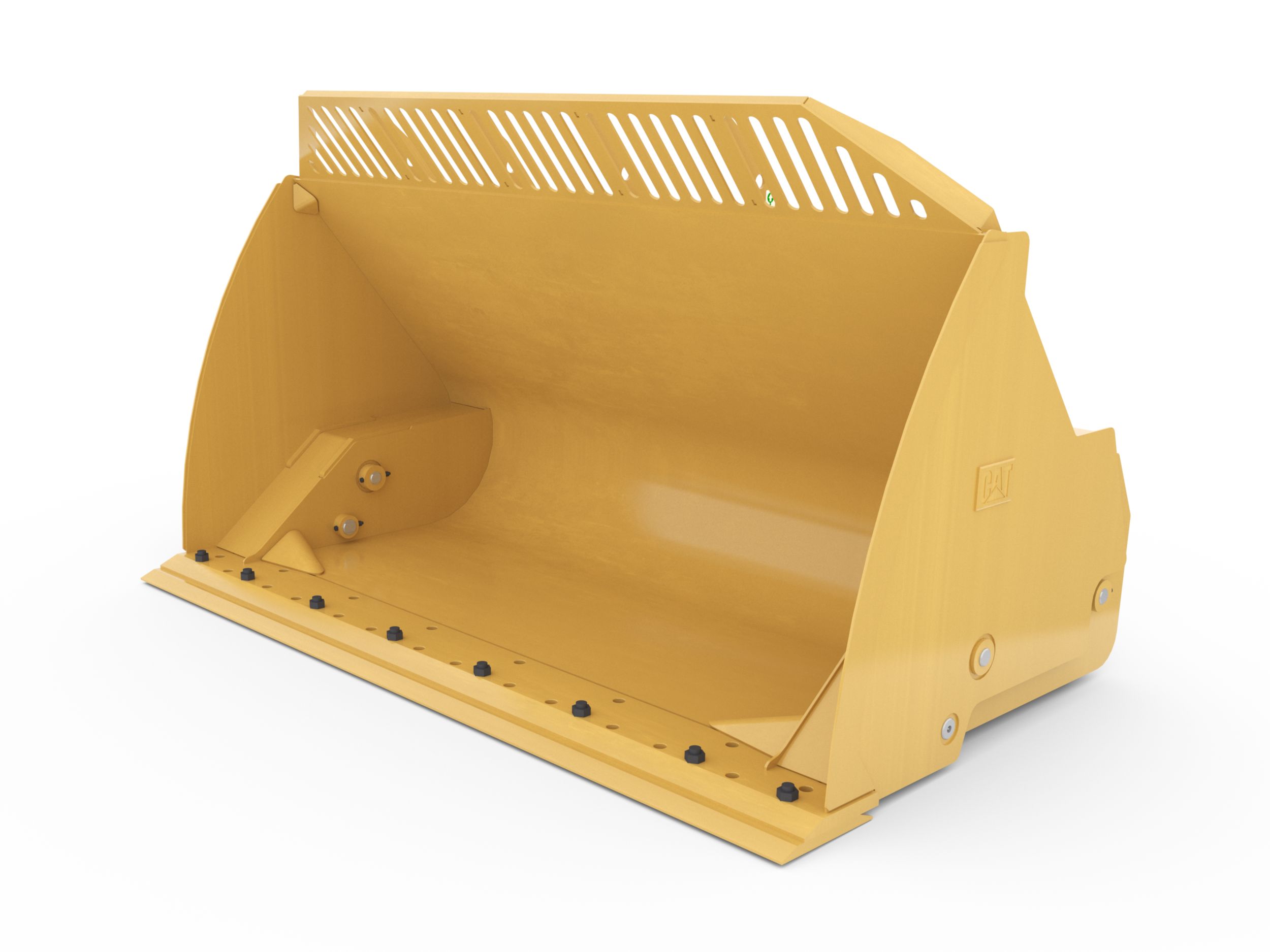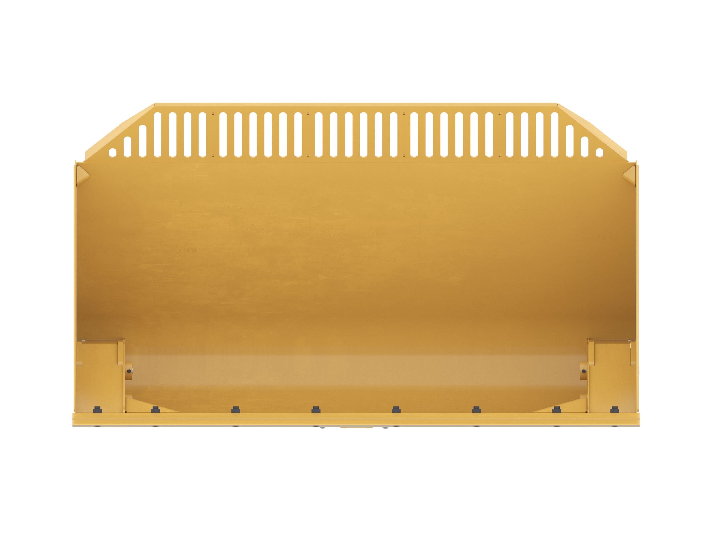 Shaped corners divert overflow from hinge pins, lift arms, hydraulic cylinders and tilt sensors helping to protect the hydraulics and machine from damage. Follows the heaped material pile form creating good forward visibility avoiding corner damage when dumping.