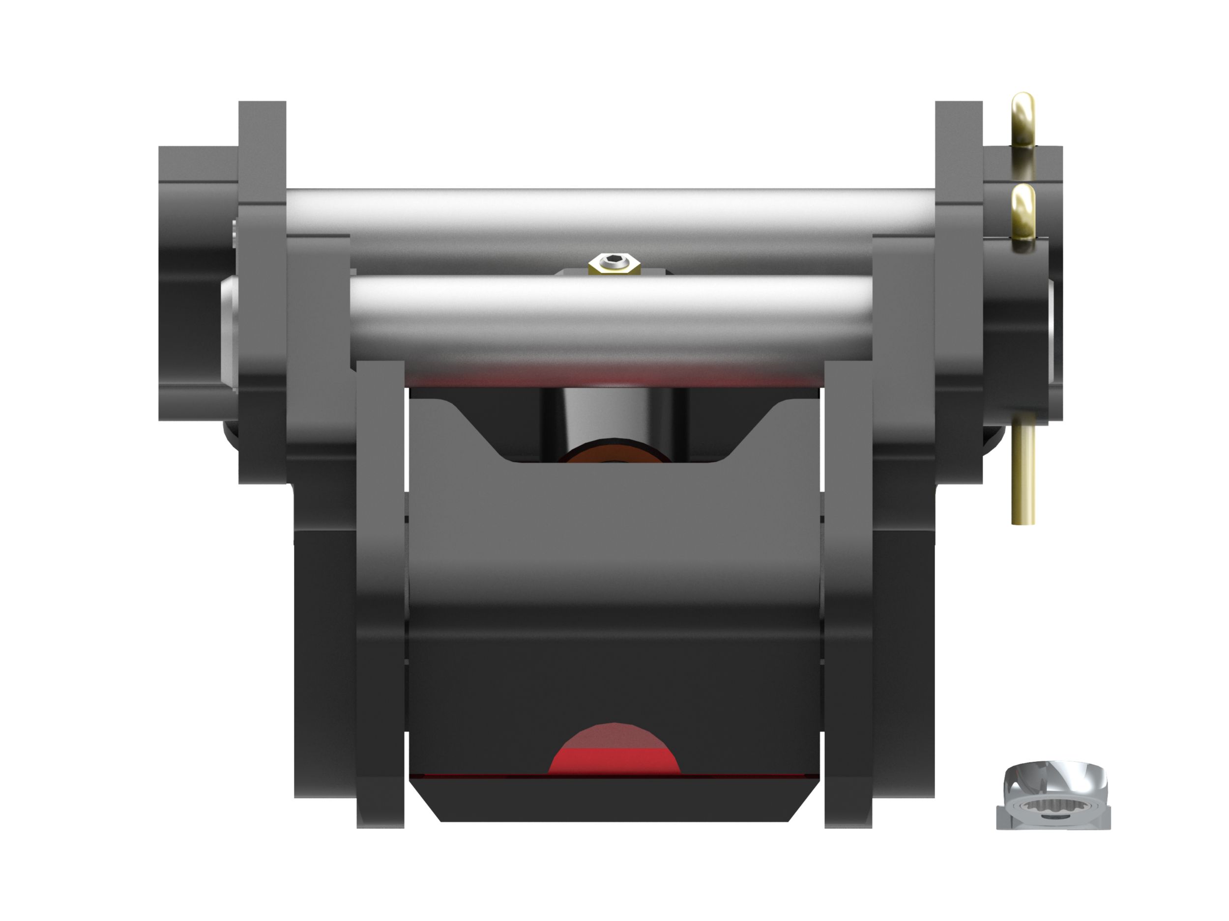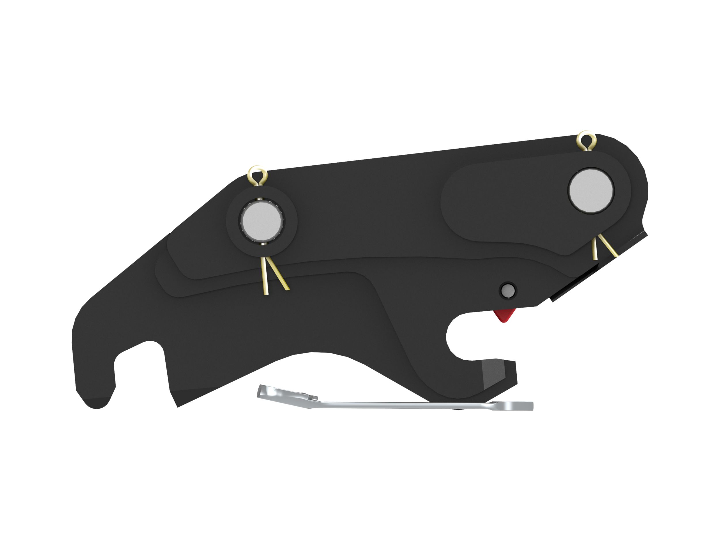 The secondary lock is independent of the cylinder and ensures the connection of the attachment to the machine.