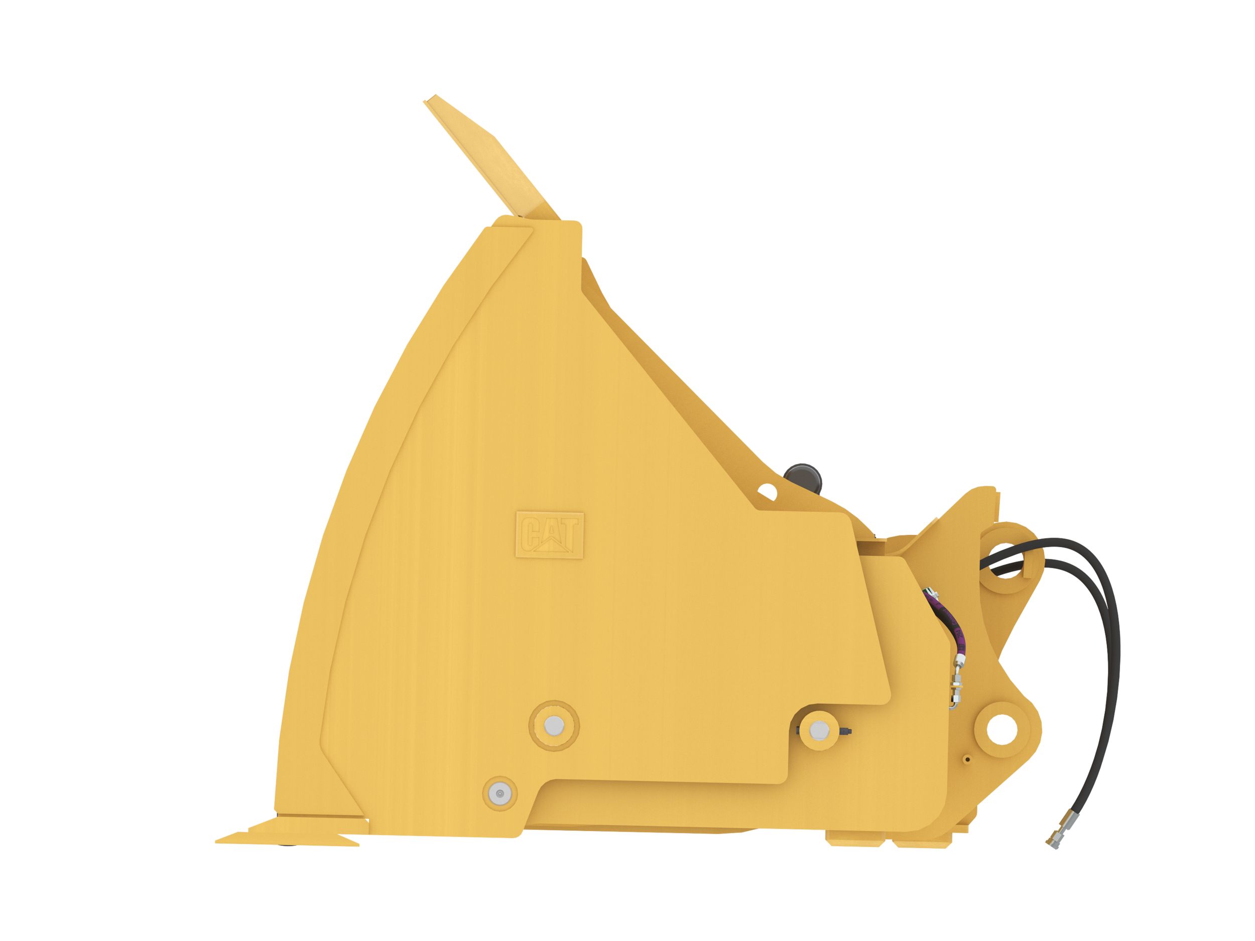Cylinder location provides long flat floor for improved bucket fill and dump. Dual hydraulic cylinders are protected inside the bucket structure from debris.