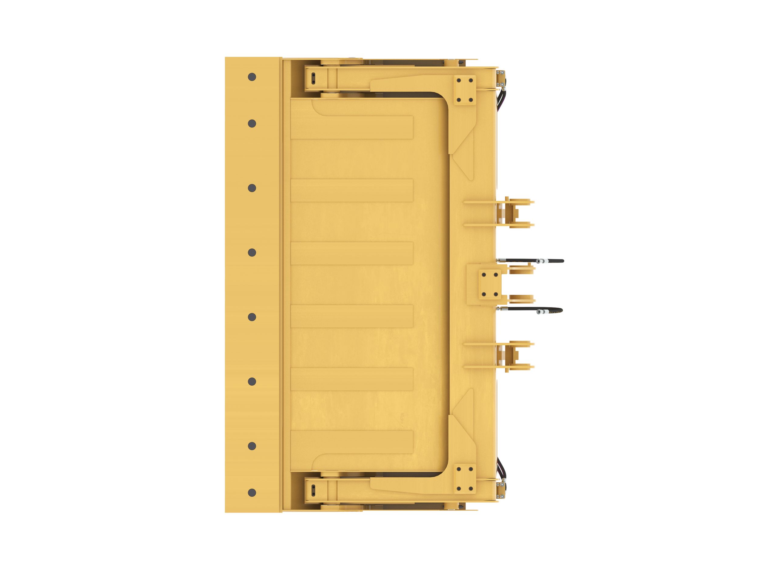 Shaped corners divert overflow from hinge pins, lift arms, hydraulic cylinders and tilt sensors helping to protect the hydraulics and machine from damage. Follows the heaped material pile form creating good forward visibility avoiding corner damage when dumping.