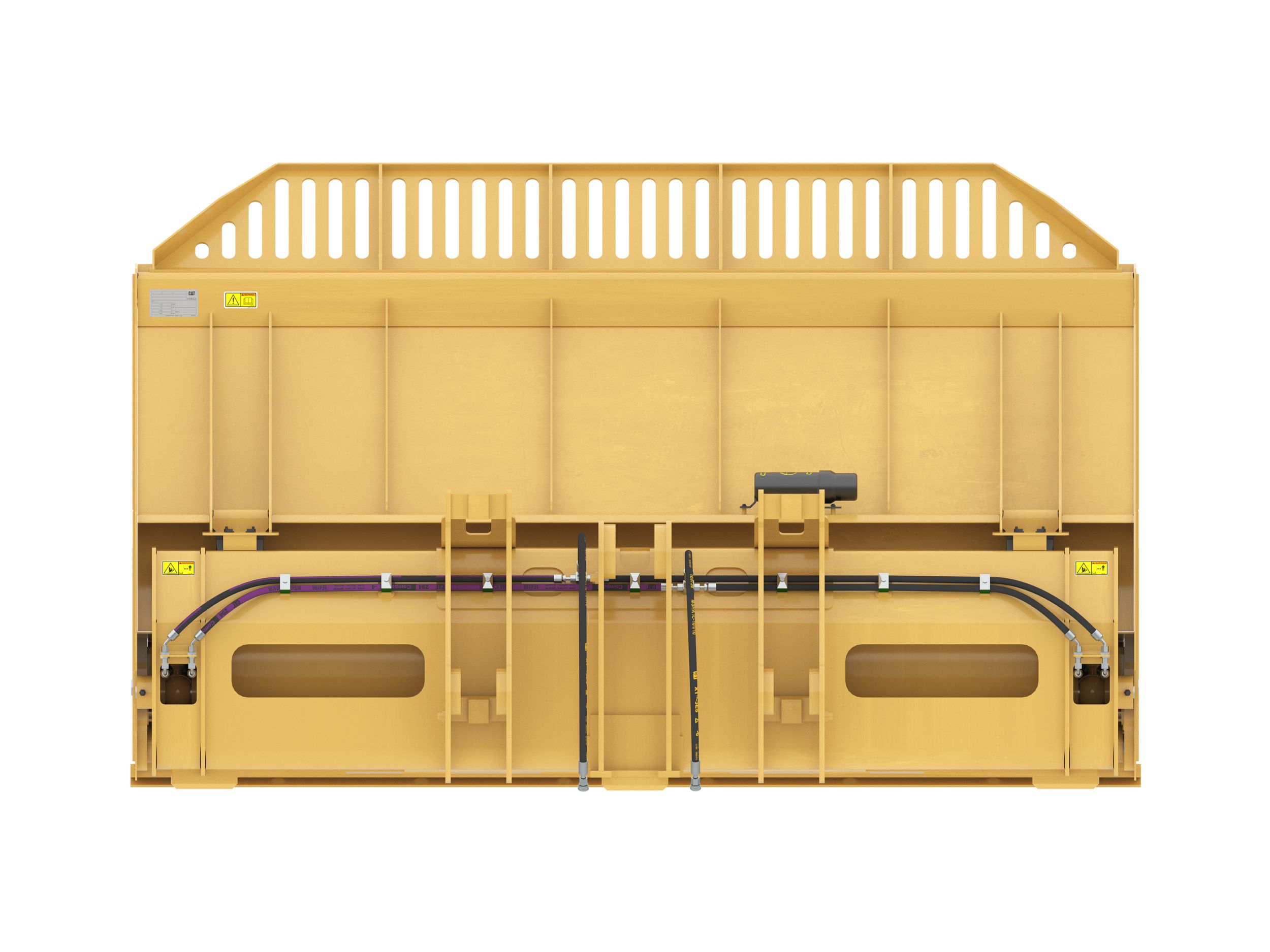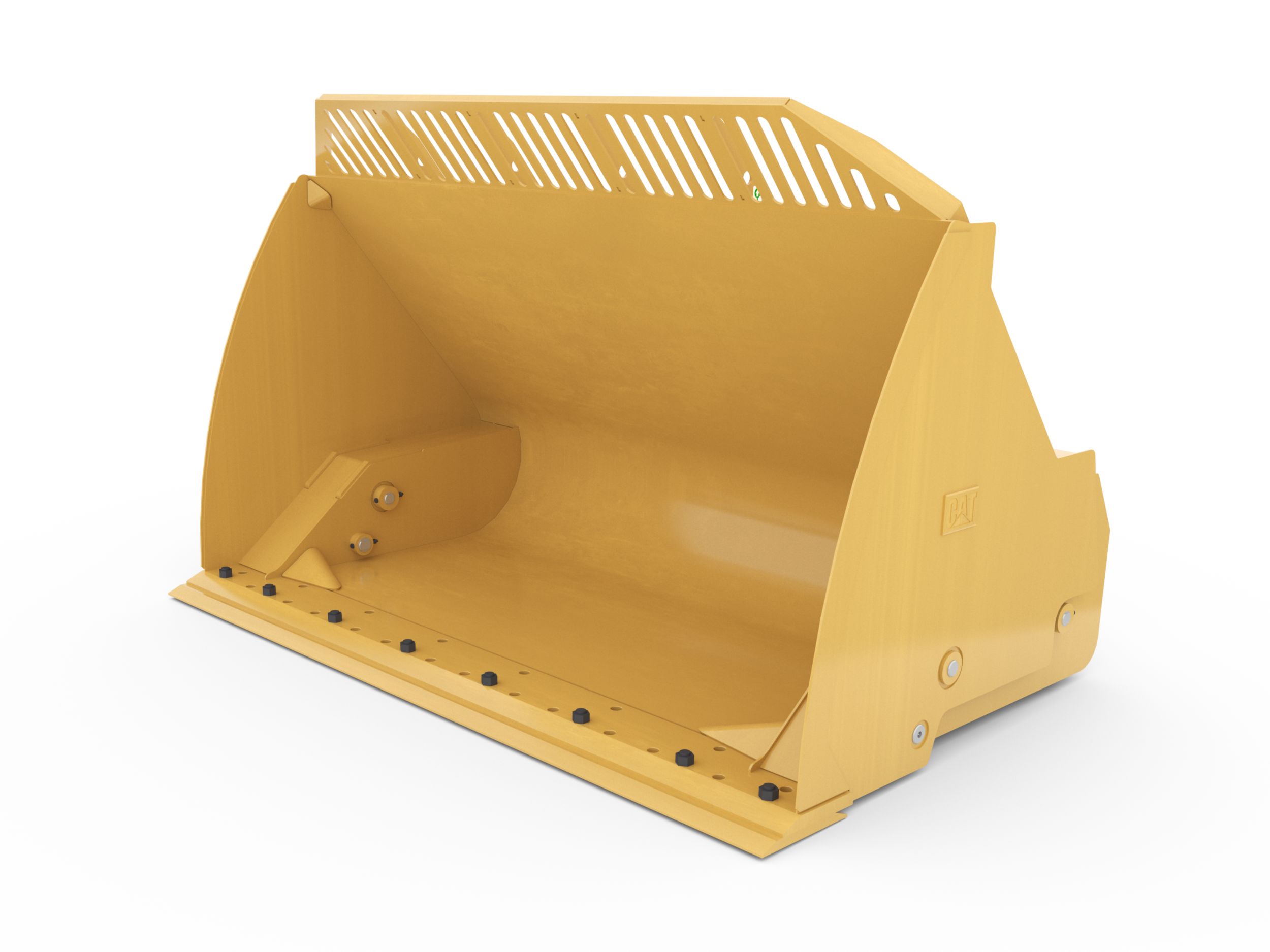 Shaped corners divert overflow from hinge pins, lift arms, hydraulic cylinders and tilt sensors helping to protect the hydraulics and machine from damage. Follows the heaped material pile form creating good forward visibility avoiding corner damage when dumping.