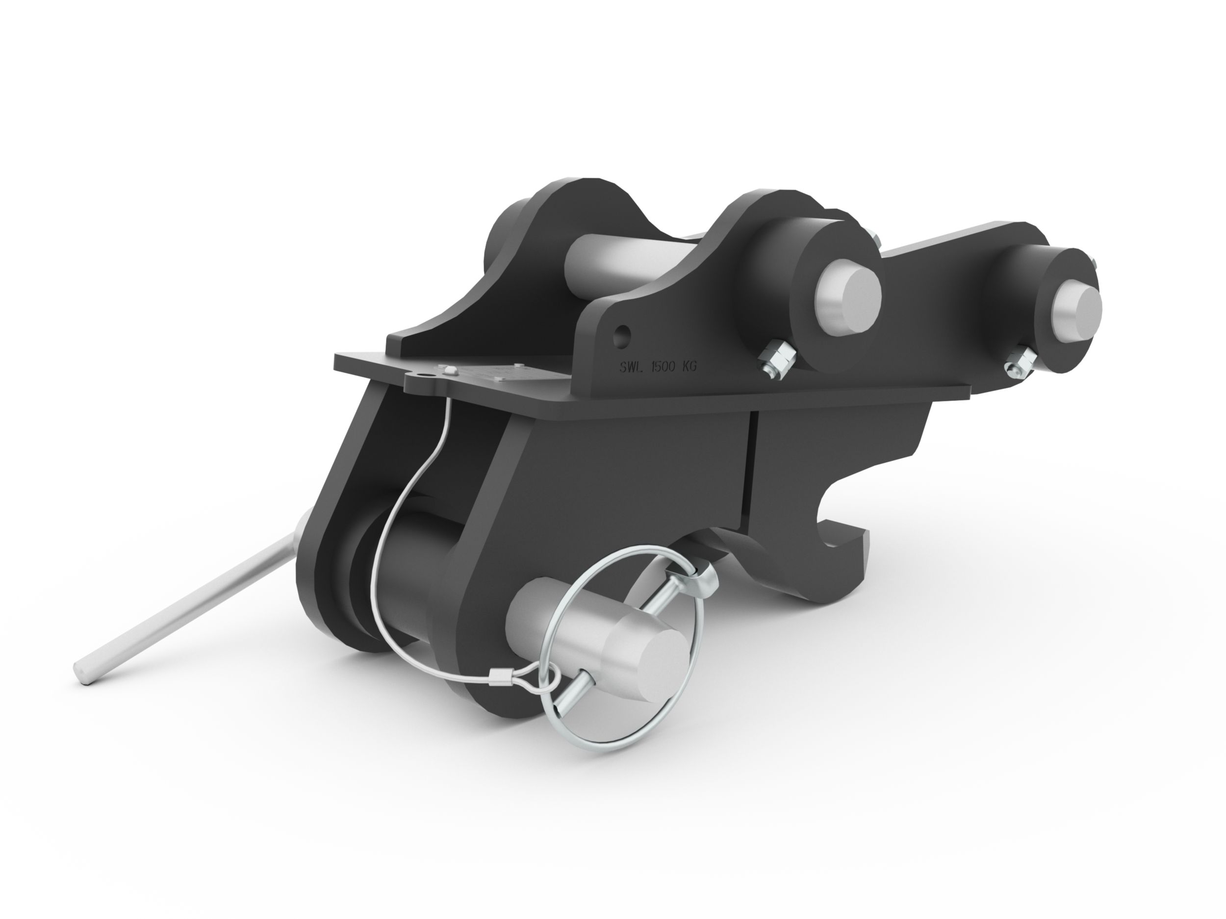 The retention pin has a lanyard to secure it the coupler to avoid it getting lost or misplaced.
