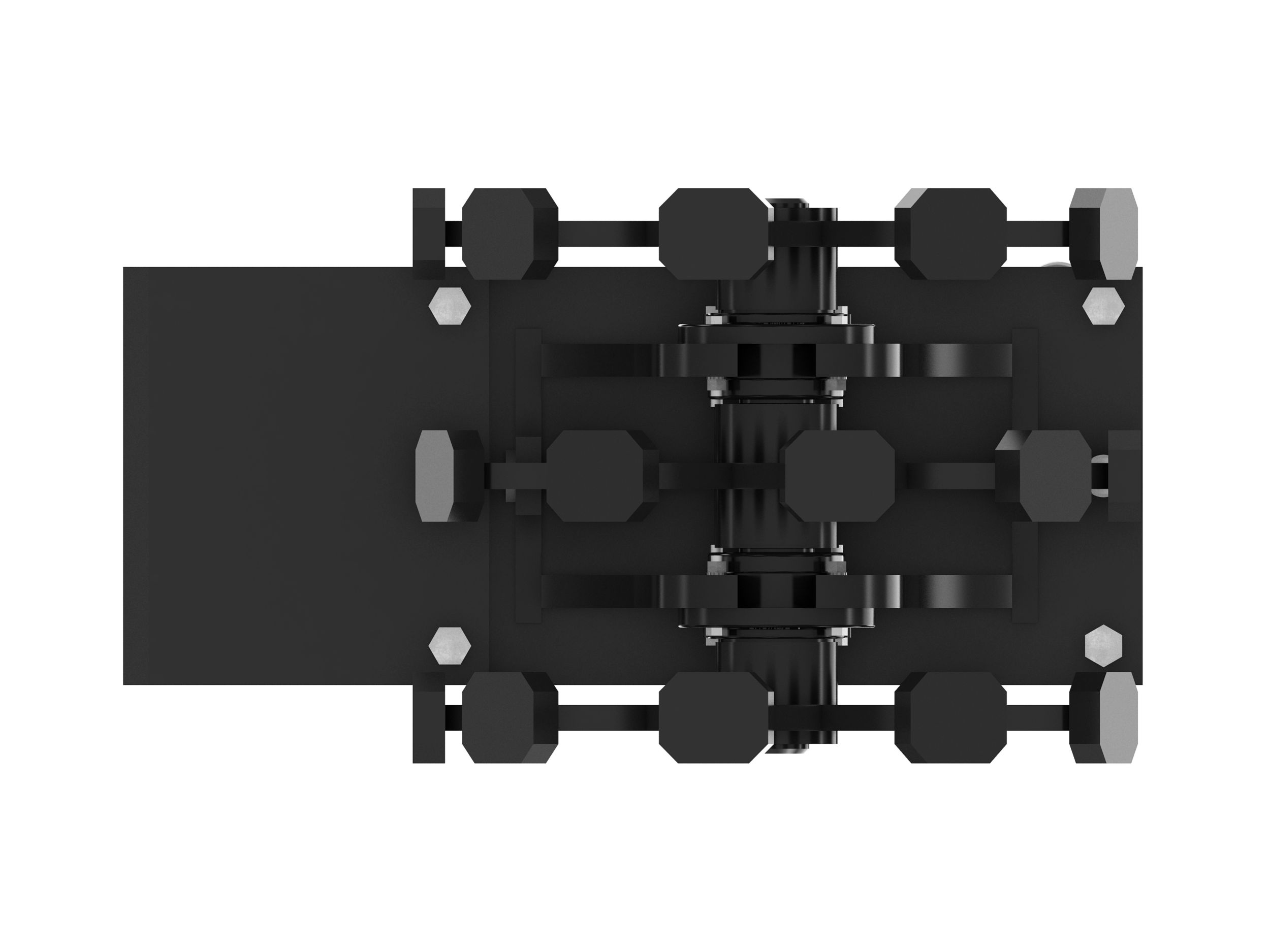 Backfill plate bolts onto main tool interface to be used in collaboration with wheel, to create smooth trench bottom.