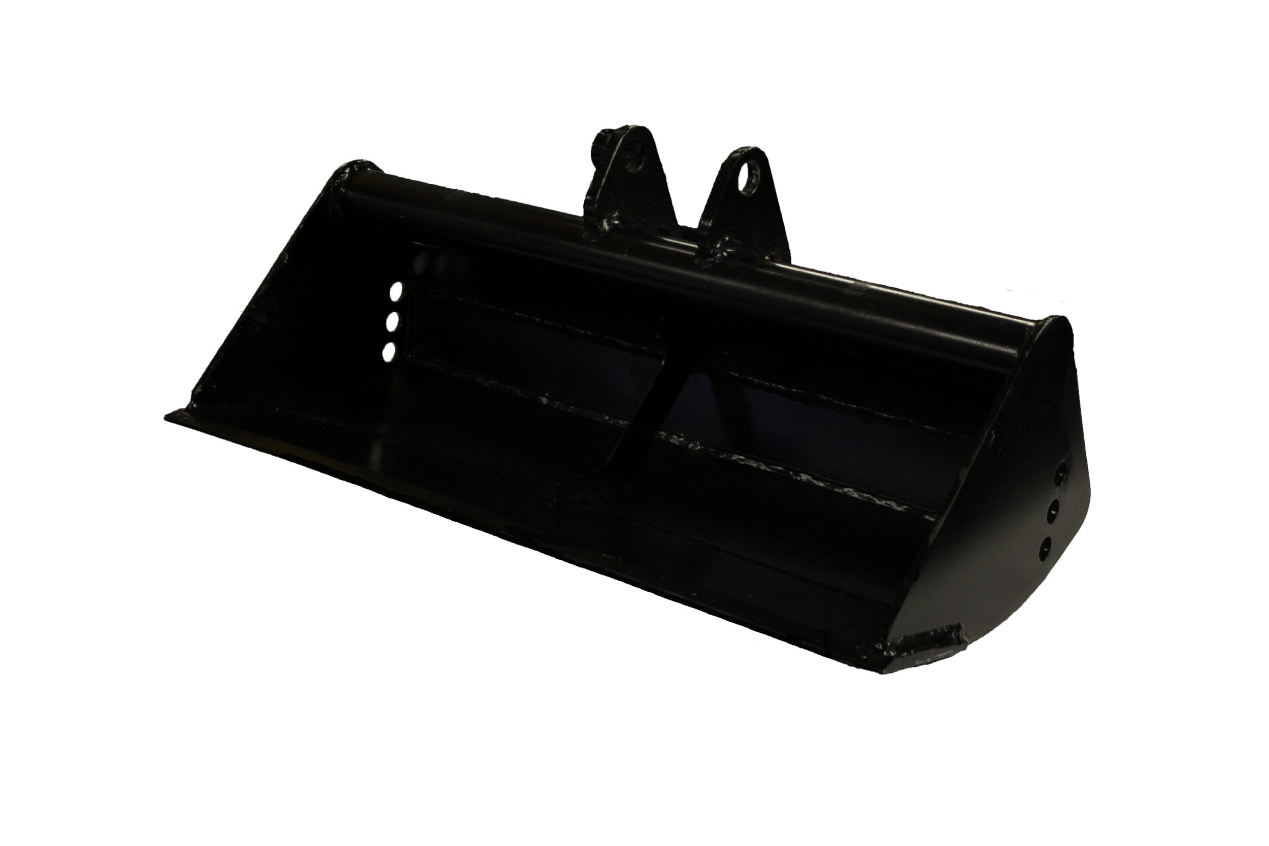Versatile bucket for applications such as cleaning wide trenches, loading materials, grading, dressing slopes and more.