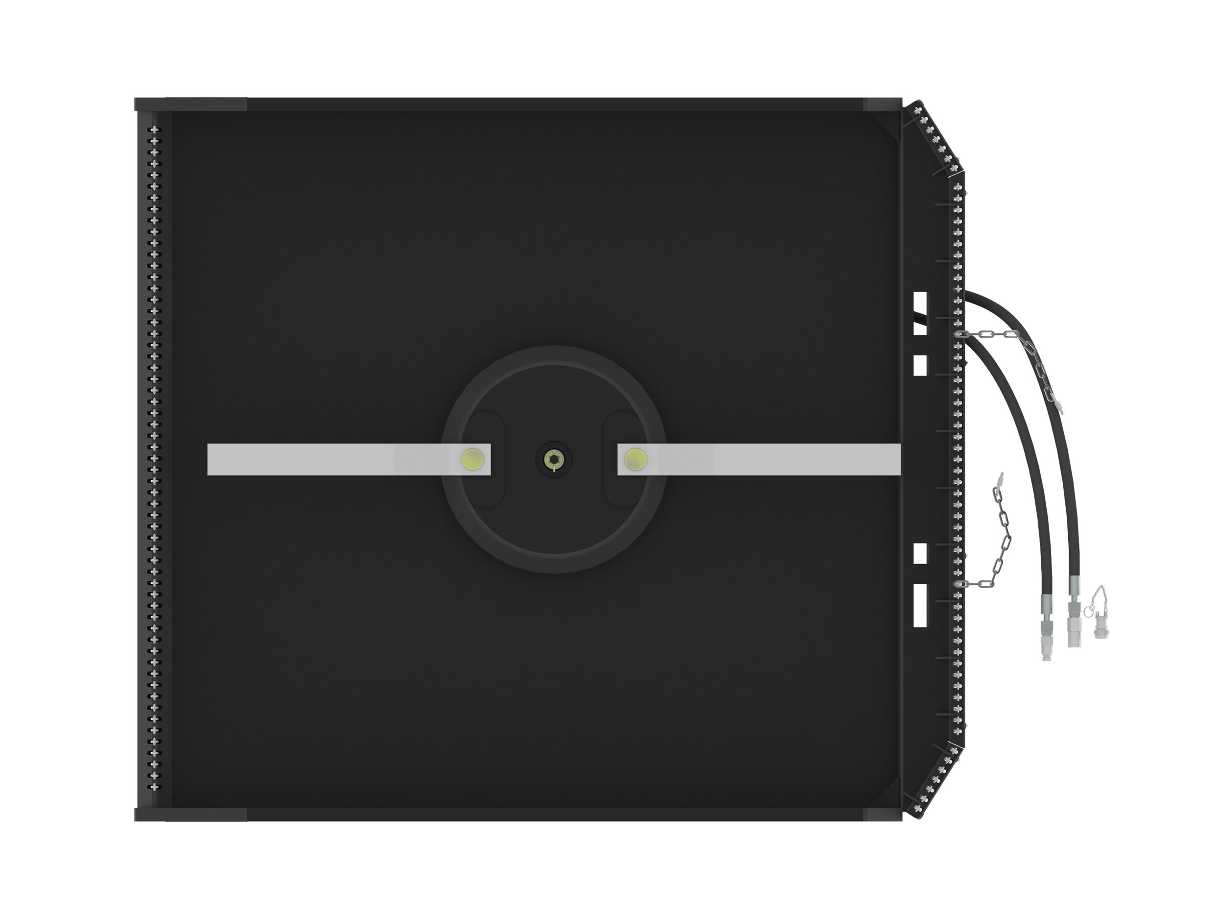 Galvanized coil chains (7.9 mm [5/16 in] proof) provide debris guarding in the front and rear areas to restrict flying debris and material.