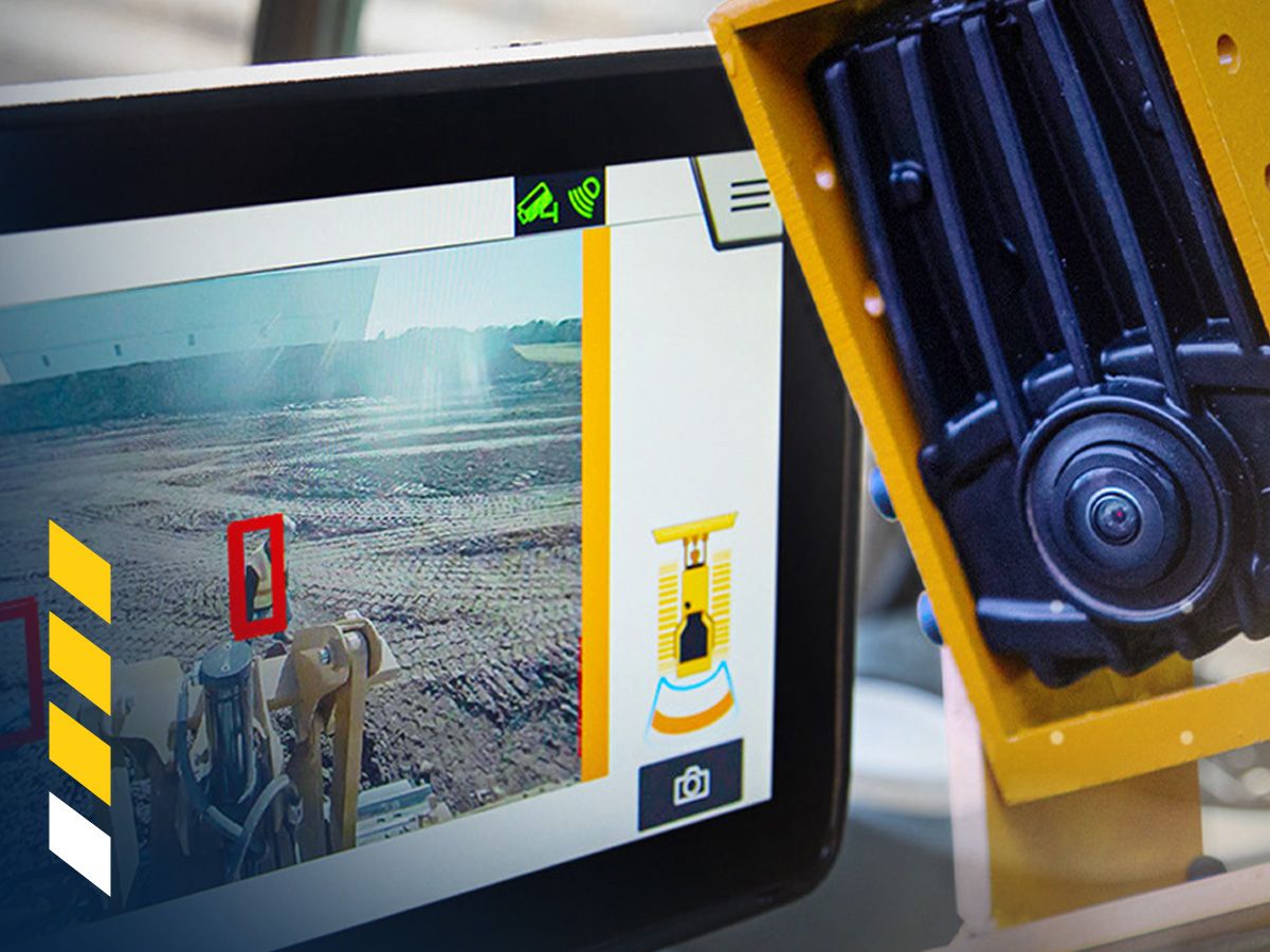 - A smart camera placed on the rear of the machine differentiates between people and background objects. When people are detected behind the machine, the system triggers a visual and audible alert based on an individual’s proximity.