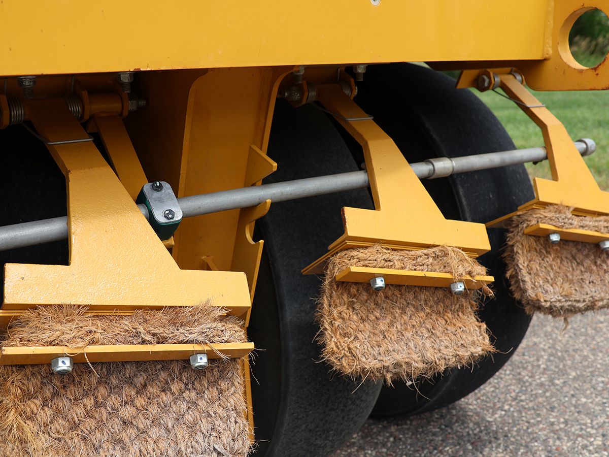 - Each wheel is equipped with a spray nozzle, adjustable high-strength scrapers, and water retention cocoa mats that help keep the wheels clean.