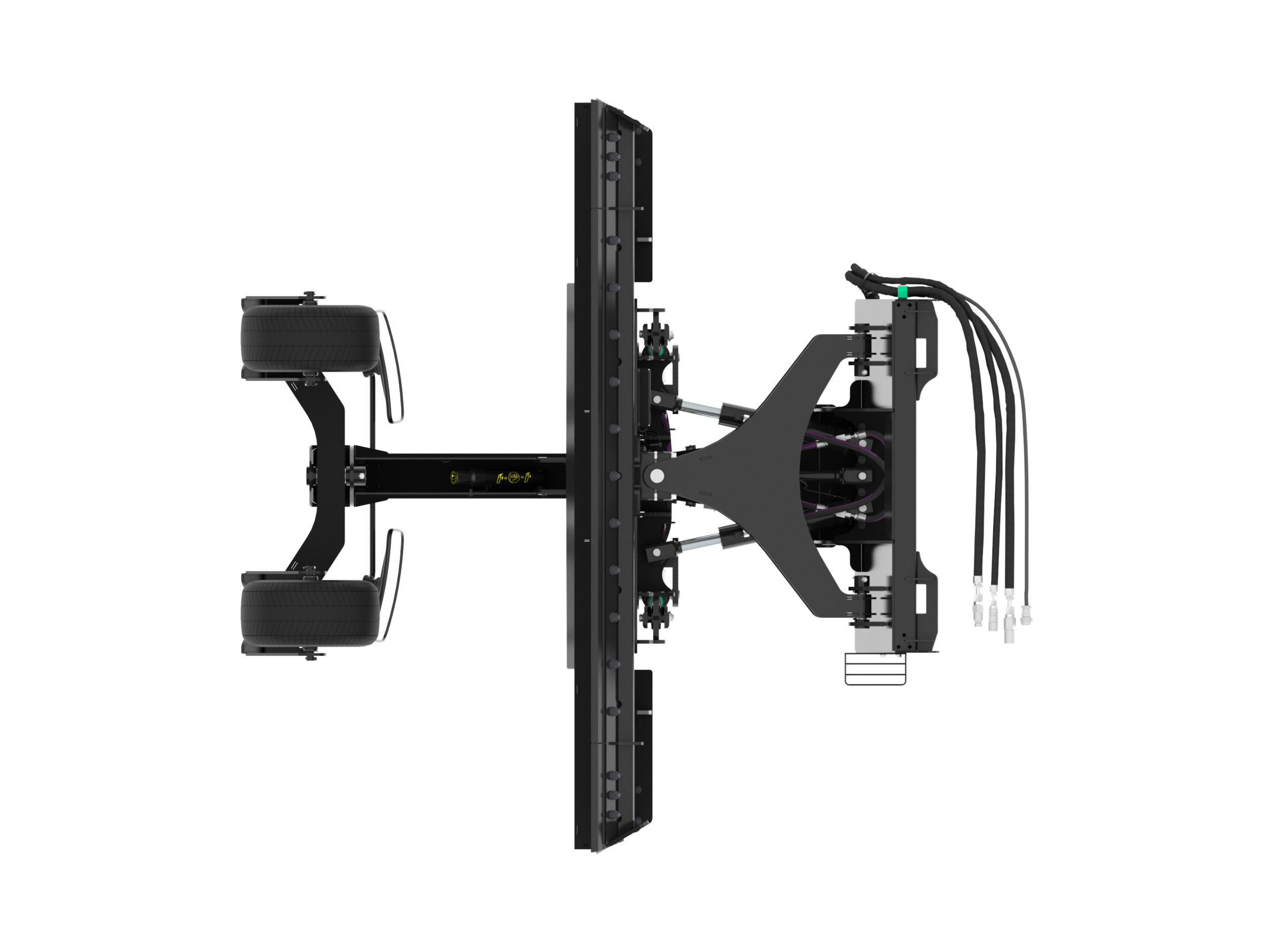 Dual front wheels are mounted on an independent axle and on casters to provide stability in both directions of travel. These wheels are air filled and will provide balance for the blade in both automatic and manual operation.
