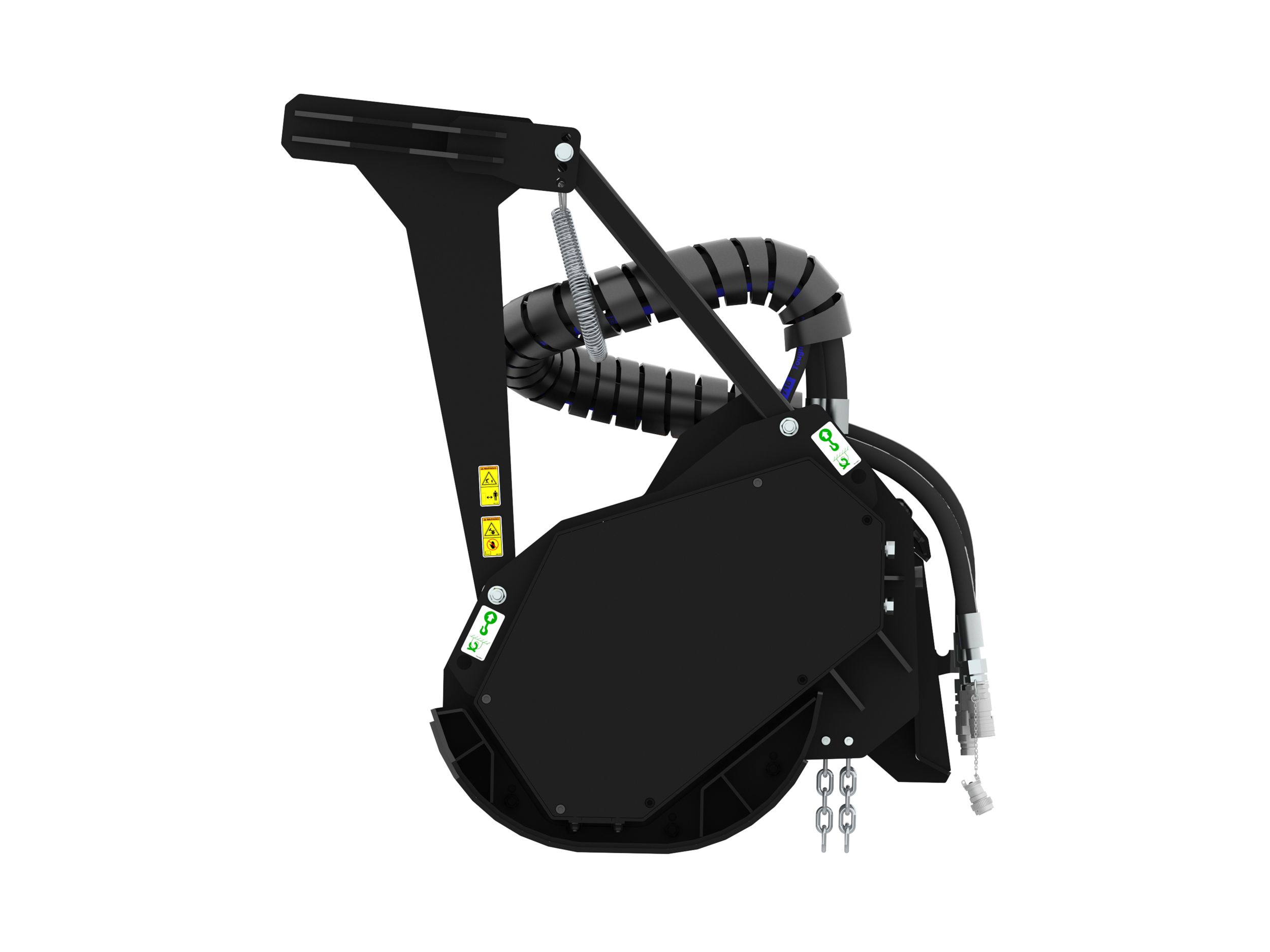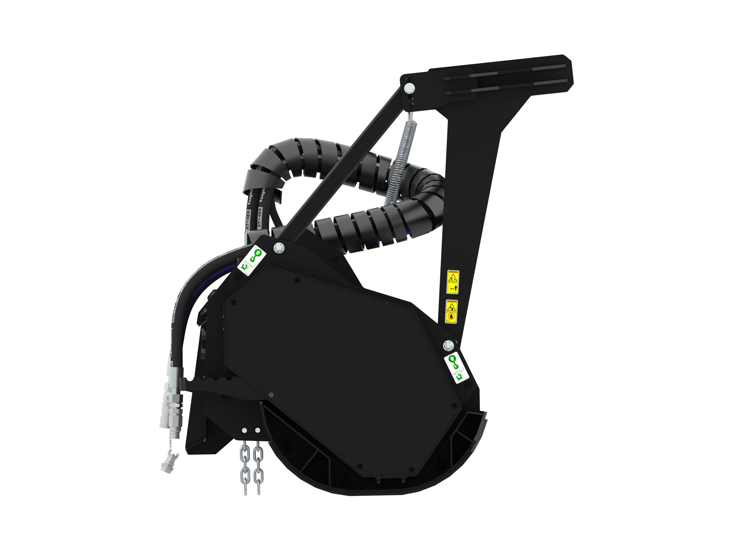 Designed for high-performance cutting, and mulching vegetation and undergrowth from typical wooded terrain. Reduces saplings, shrubs and trees into mulched material.