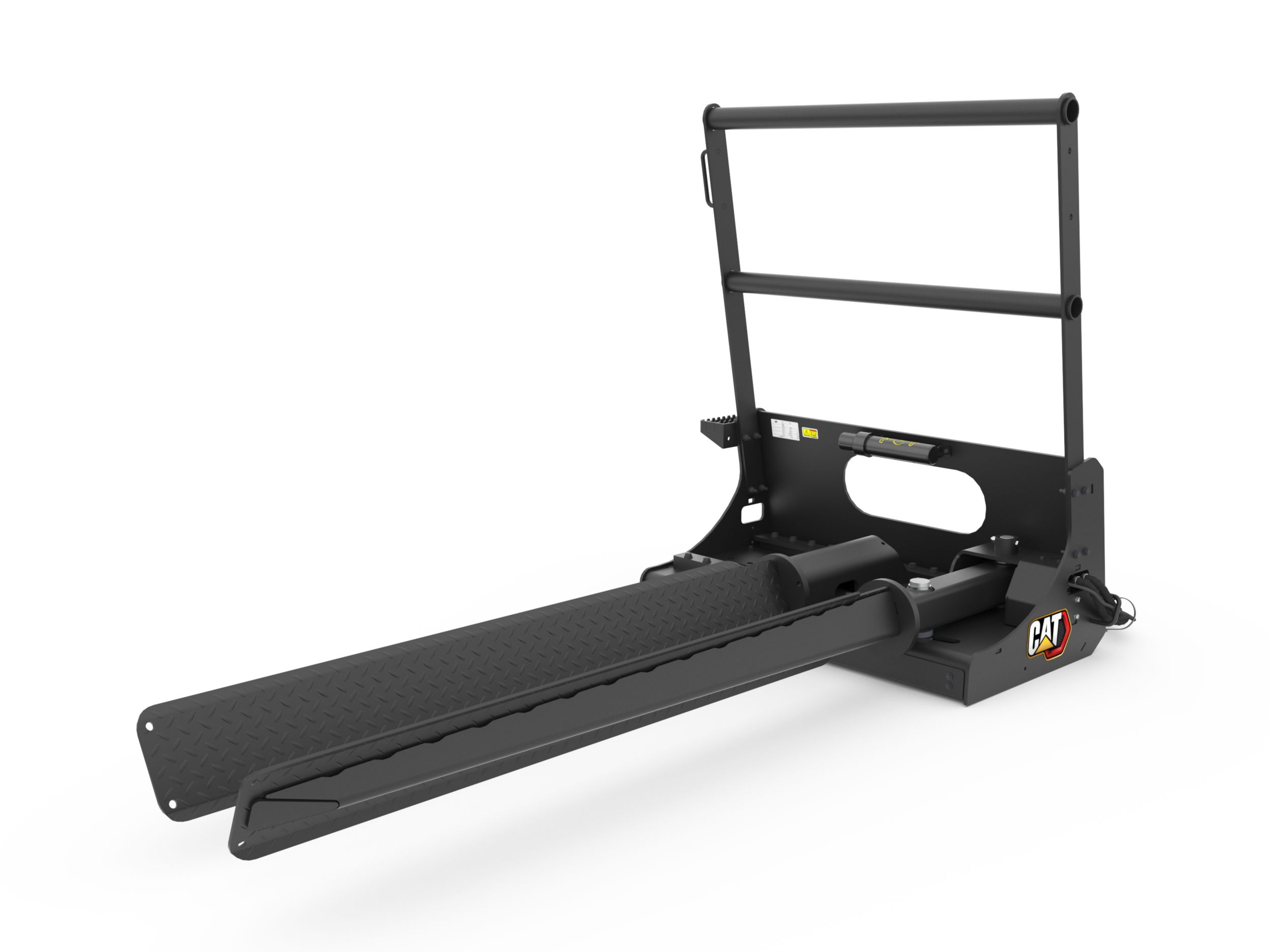 Deeply serrated step provides secure footing for operators entering and exiting machines.