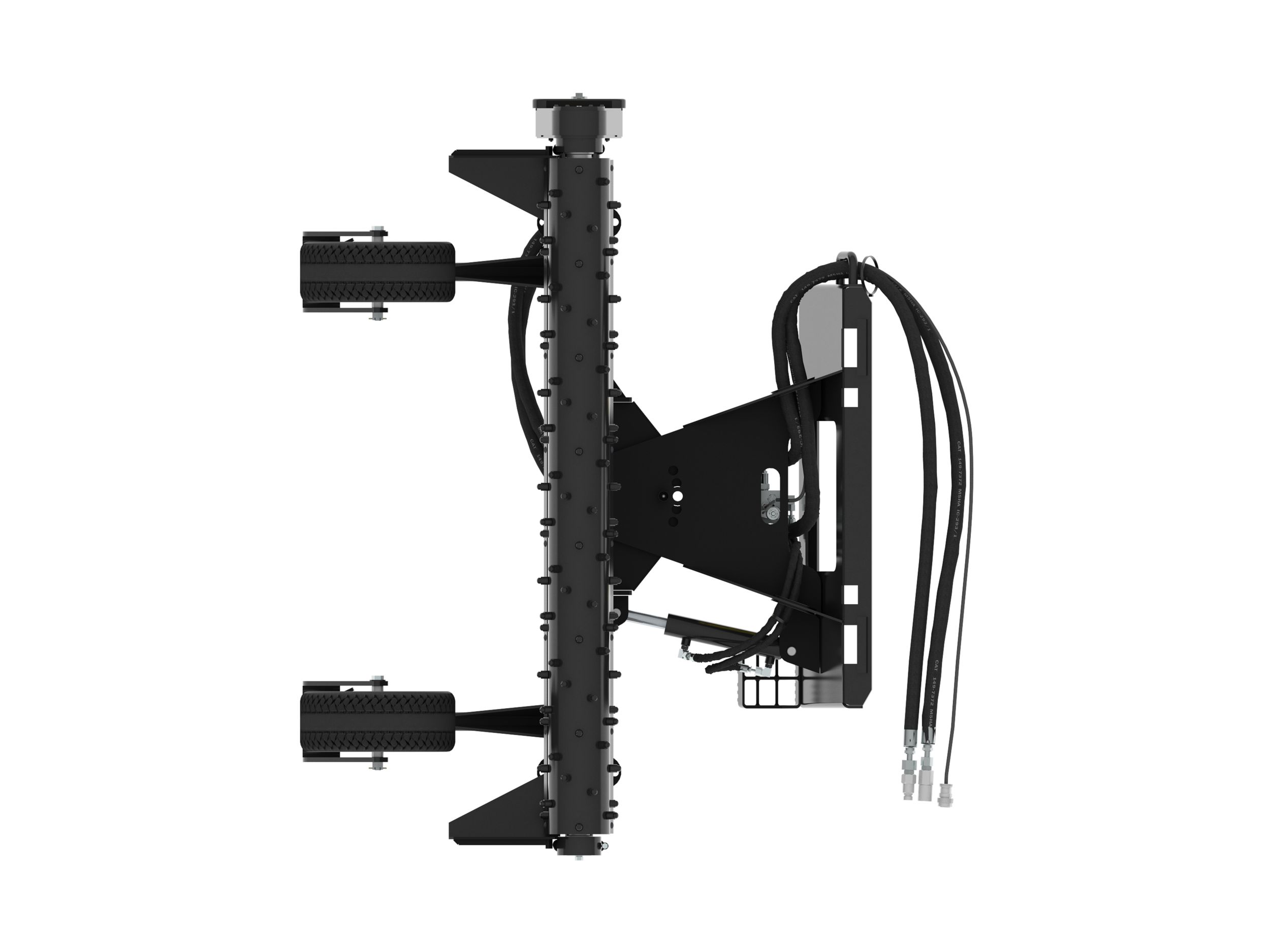 Manual or hydraulic angling up to 20 degrees right or left of center. Hydraulic angling option allows the operator to control the power box rake angle from the operator compartment.