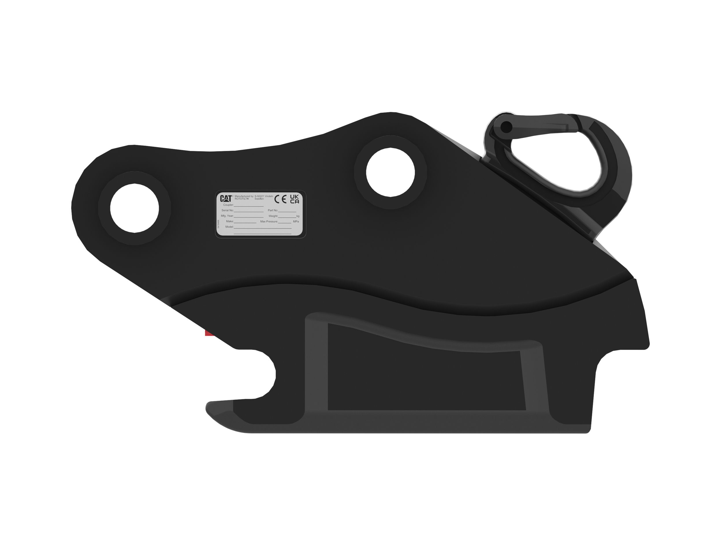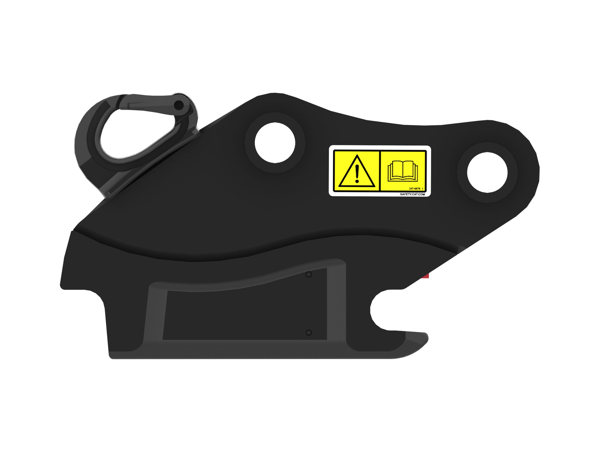 The visual verification rod allows the operator to visibly confirm, from the cab, that the coupler has successfully locked the attachment into place properly.