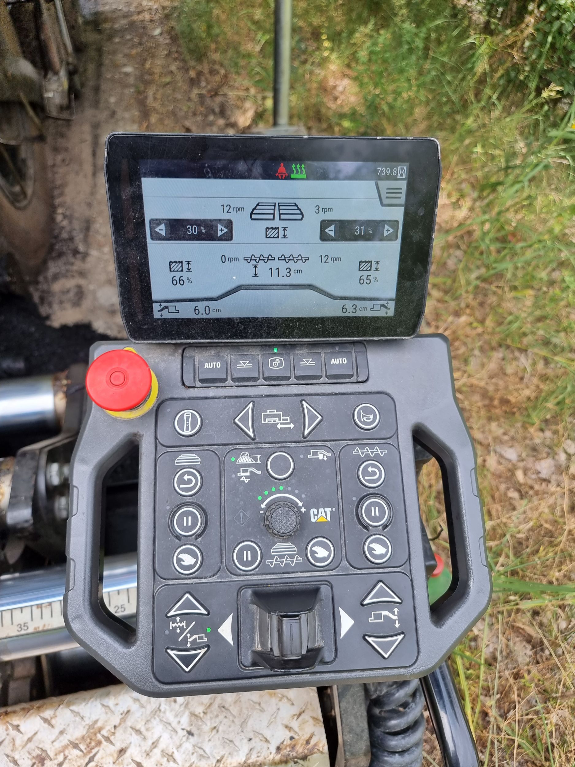 - Screed operating consoles are equipped with mix height adjustment for the augers that provide material flow modification. When equipped with Cat® Grade Control, conveyor ratio adjustment (conveyor material height) can be performed through the display