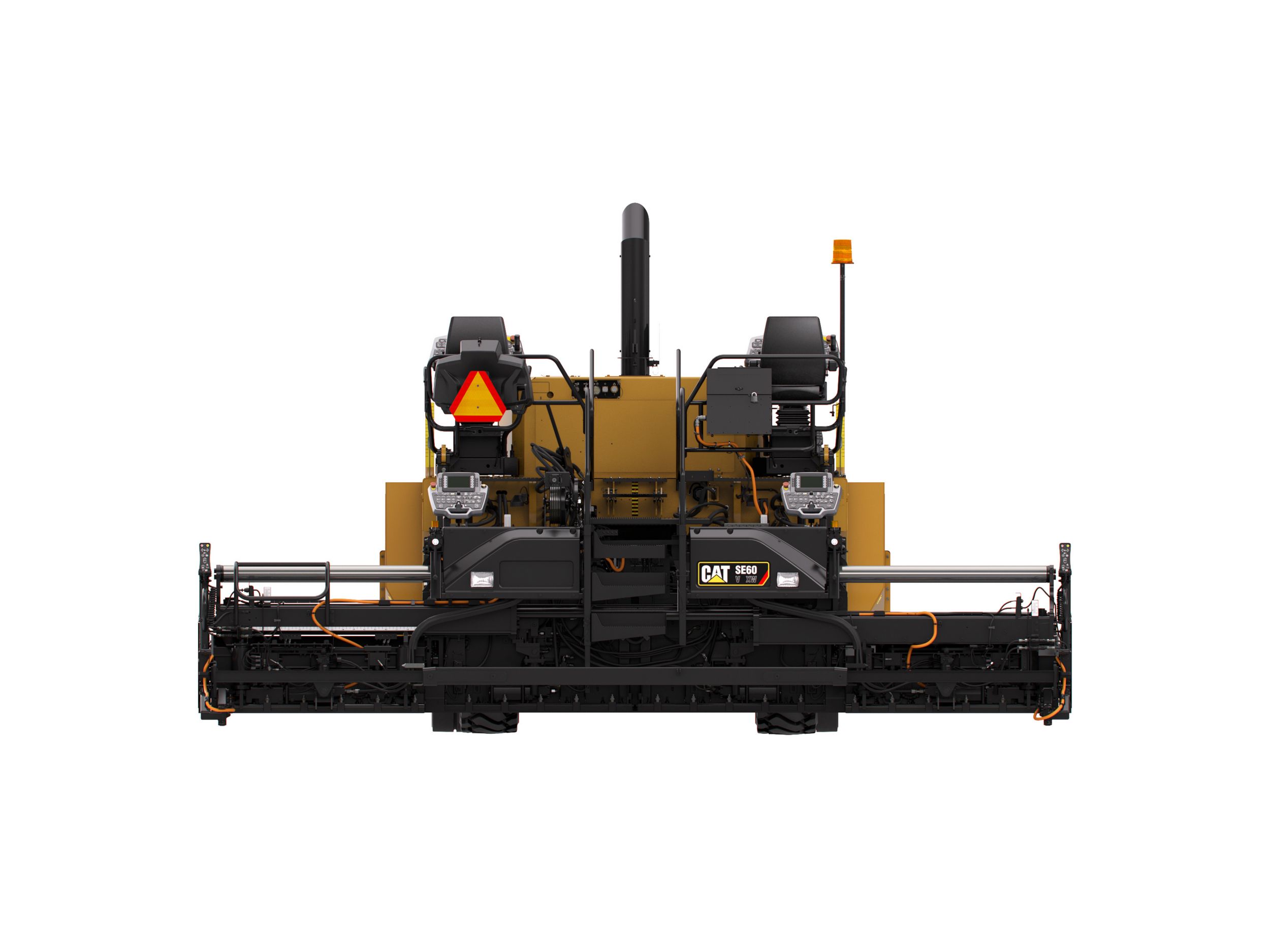 Factory integrated Cat Grade Control allows the crew to operate from either of the tractor or screed consoles. A split screen mode enables the screed operators to work from a single side or from each side of the screed. This is especially helpful when training new operators and when the crew is tasked with multiple job site duties.
