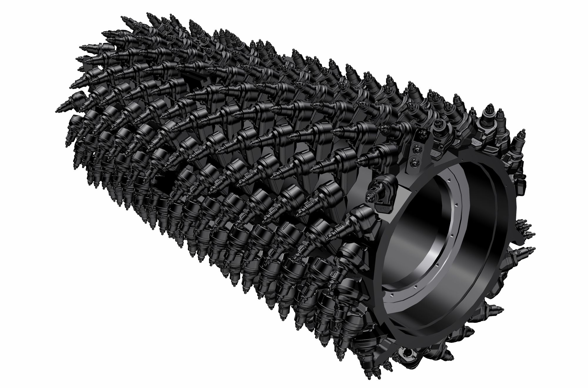 - Water can penetrate through the toolholder radial access hole to aid tooth rotation for uniform bit wear