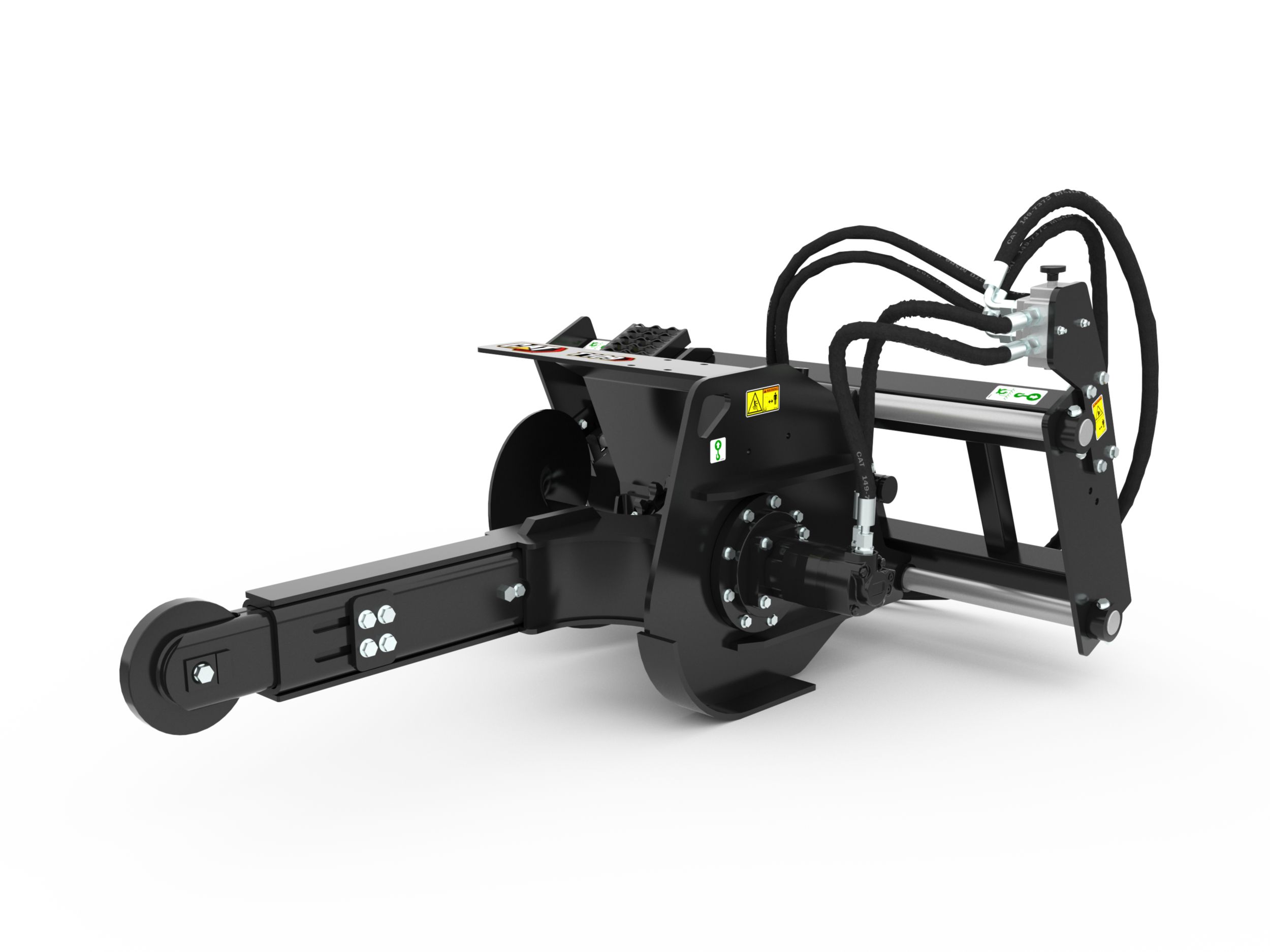 Hydraulic or manual side shift provides close trenching flexibility near structures or obstructions. Hydraulic side shift, standard on the T315 (optional on T109 and T112) is controlled from operator’s compartment using the standard flow auxiliary hydraulic circuit selector control.
