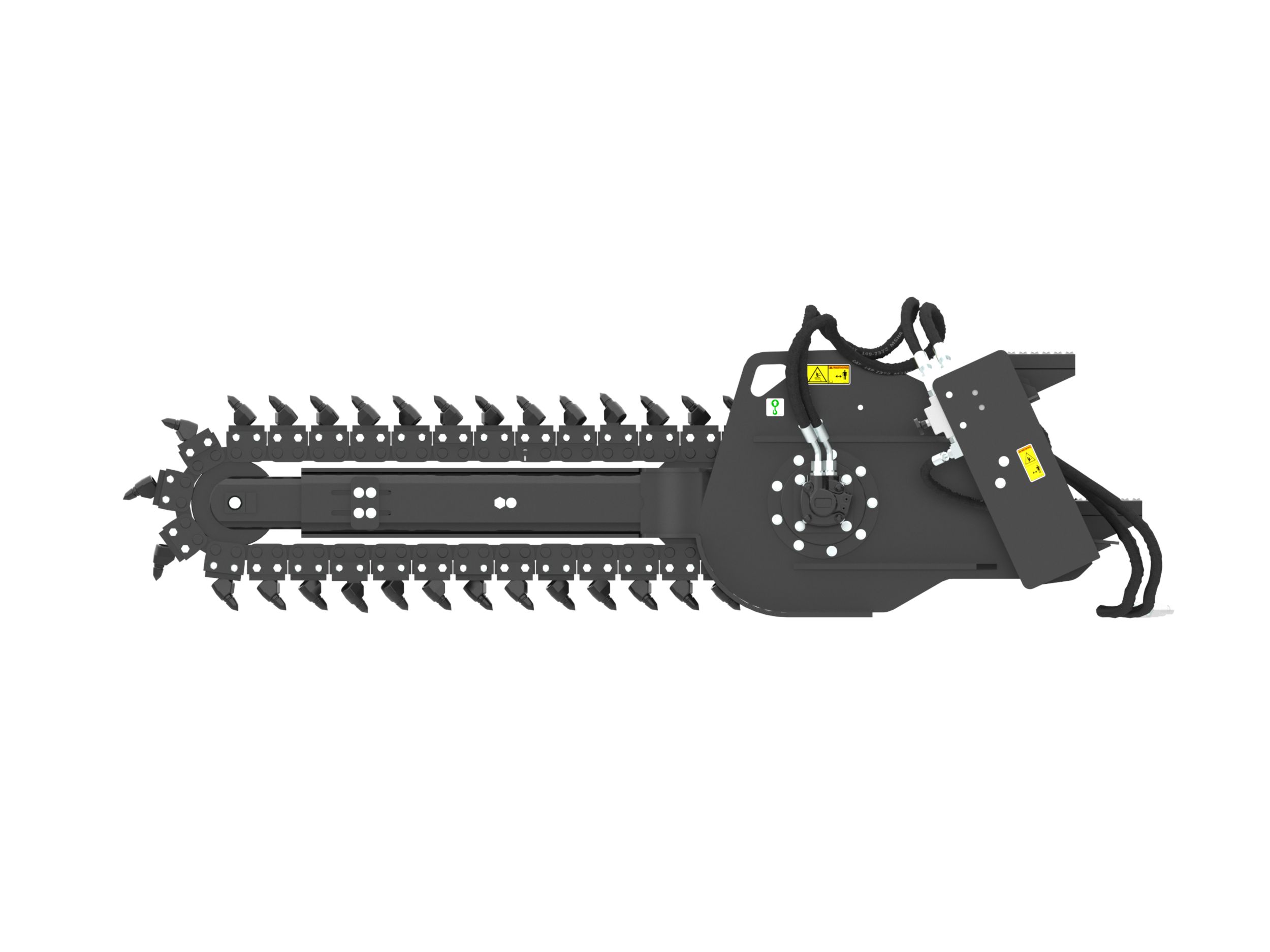 Optional chain types and cutting widths are available for specific soil, digging requirements and trench widths. These chain types include Standard, Combo, Terminator, and Rockfrost.