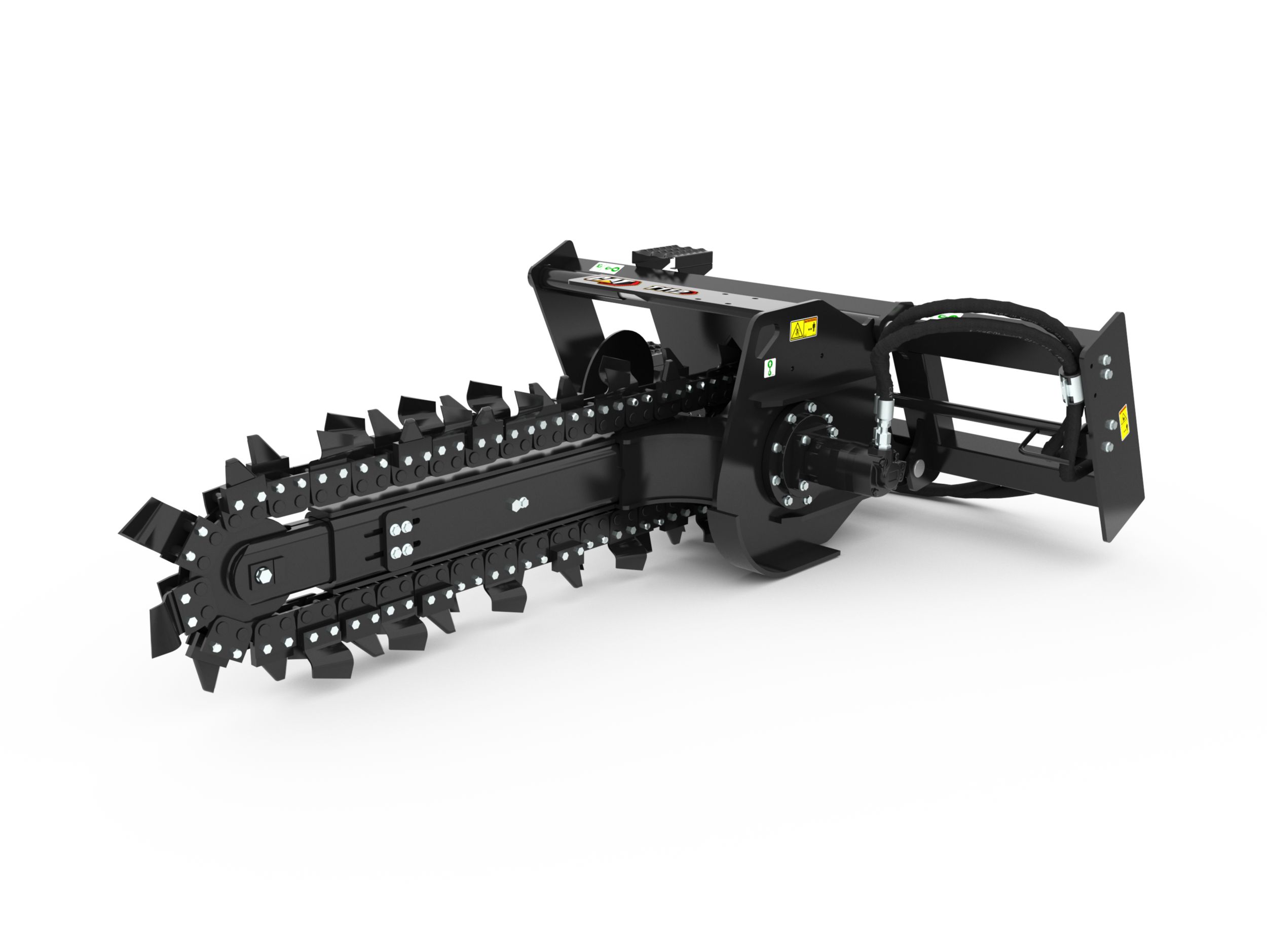 Optional chain types and cutting widths are available for specific soil, digging requirements and trench widths. These chain types include Standard, Combo, Terminator, and Rockfrost.