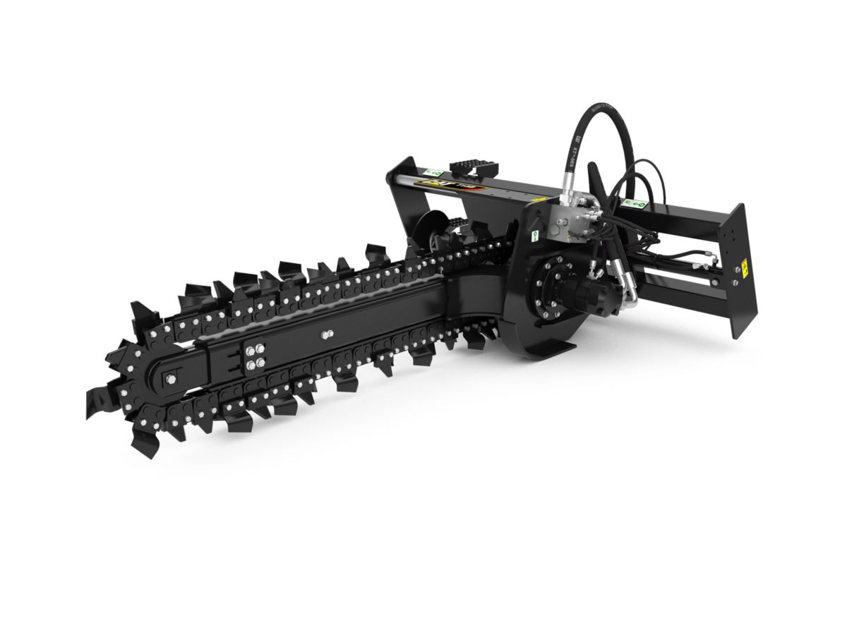Optional chain types and cutting widths are available for specific soil, digging requirements and trench widths. These chain types include Standard, Combo, Terminator, and Rockfrost.
