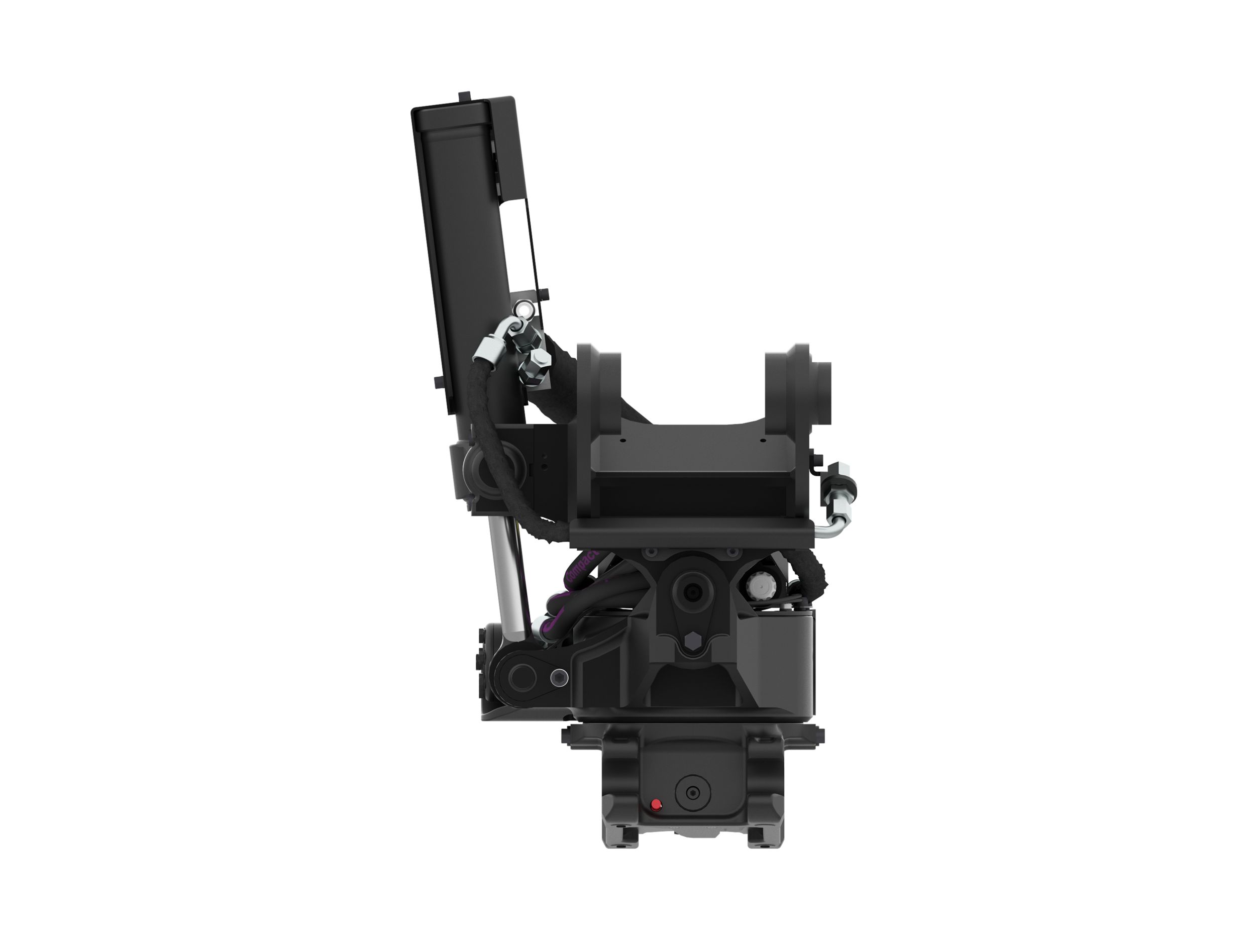 LCS incorporates an electronic position sensor integrated into the quick coupler hydraulic cylinder. This sensor provides precise and reliable input to an electronic processor mounted inside the quick coupler. This microprocessor provides digital communication to the Next Generation MHE machine Electronic Control Module (ECM) by way of an electrical harness. This data is then displayed on the operators display screen, and will provide audible indications when that locking status changes.