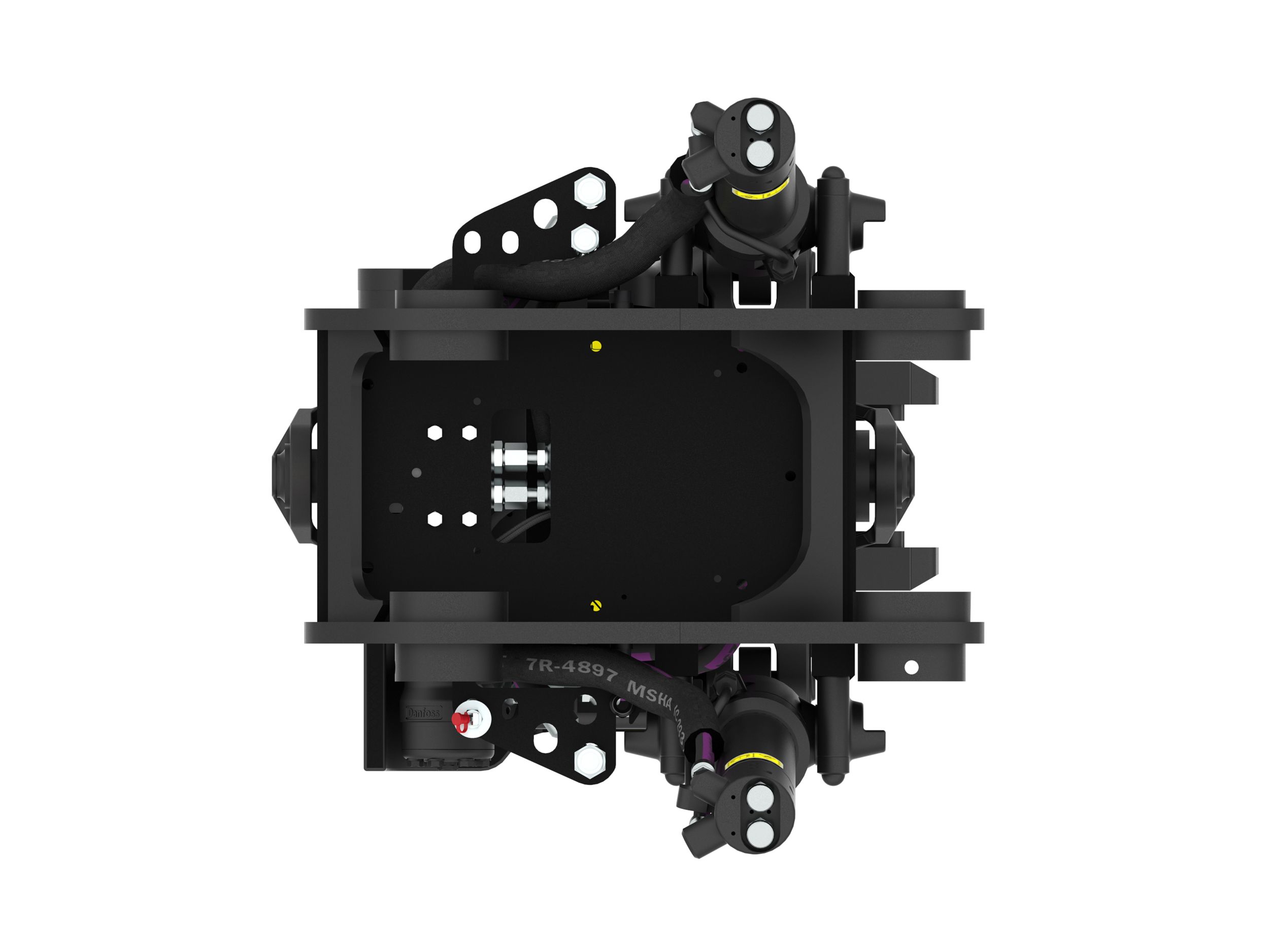 LCS incorporates an electronic position sensor integrated into the quick coupler hydraulic cylinder. This sensor provides precise and reliable input to an electronic processor mounted inside the quick coupler. This microprocessor provides digital communication to the Next Generation MHE machine Electronic Control Module (ECM) by way of an electrical harness. This data is then displayed on the operators display screen, and will provide audible indications when that locking status changes.
