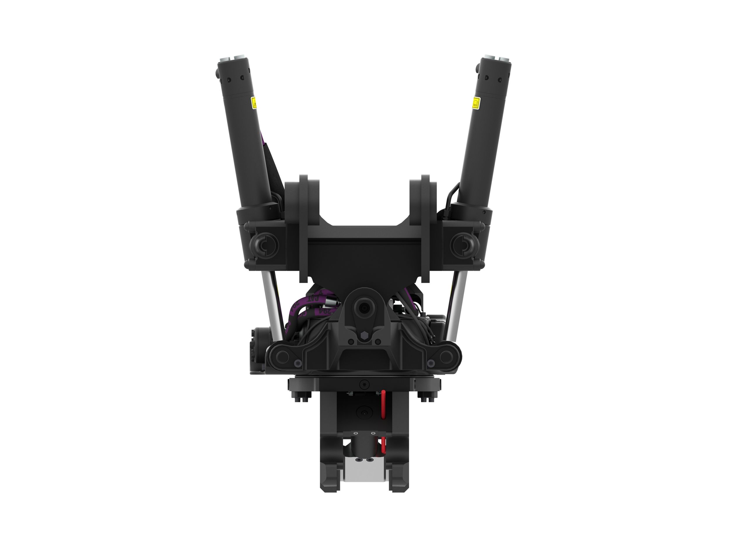 The visual verification indicator allows the operator to visibly confirm, from the cab, that the coupler has successfully locked the attachment into place properly.