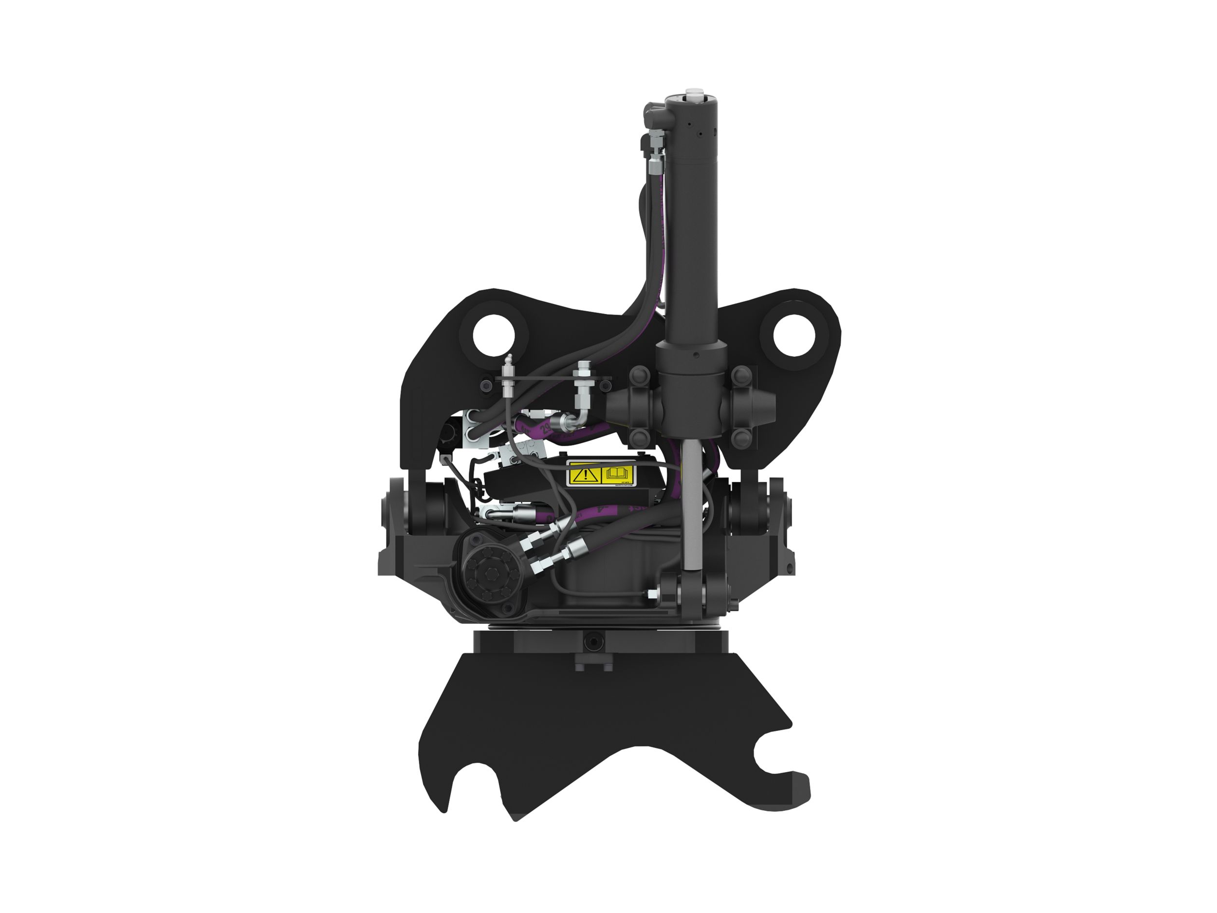 LCS incorporates an electronic position sensor integrated into the quick coupler hydraulic cylinder. This sensor provides precise and reliable input to an electronic processor mounted inside the quick coupler. This microprocessor provides digital communication to the Next Generation MHE machine Electronic Control Module (ECM) by way of an electrical harness. This data is then displayed on the operators display screen, and will provide audible indications when that locking status changes.