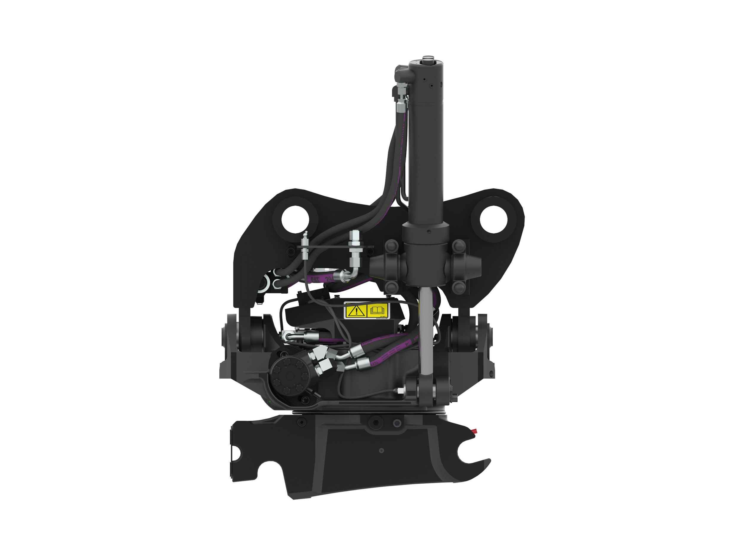 The visual verification indicator allows the operator to visibly confirm, from the cab, that the coupler has successfully locked the attachment into place properly.