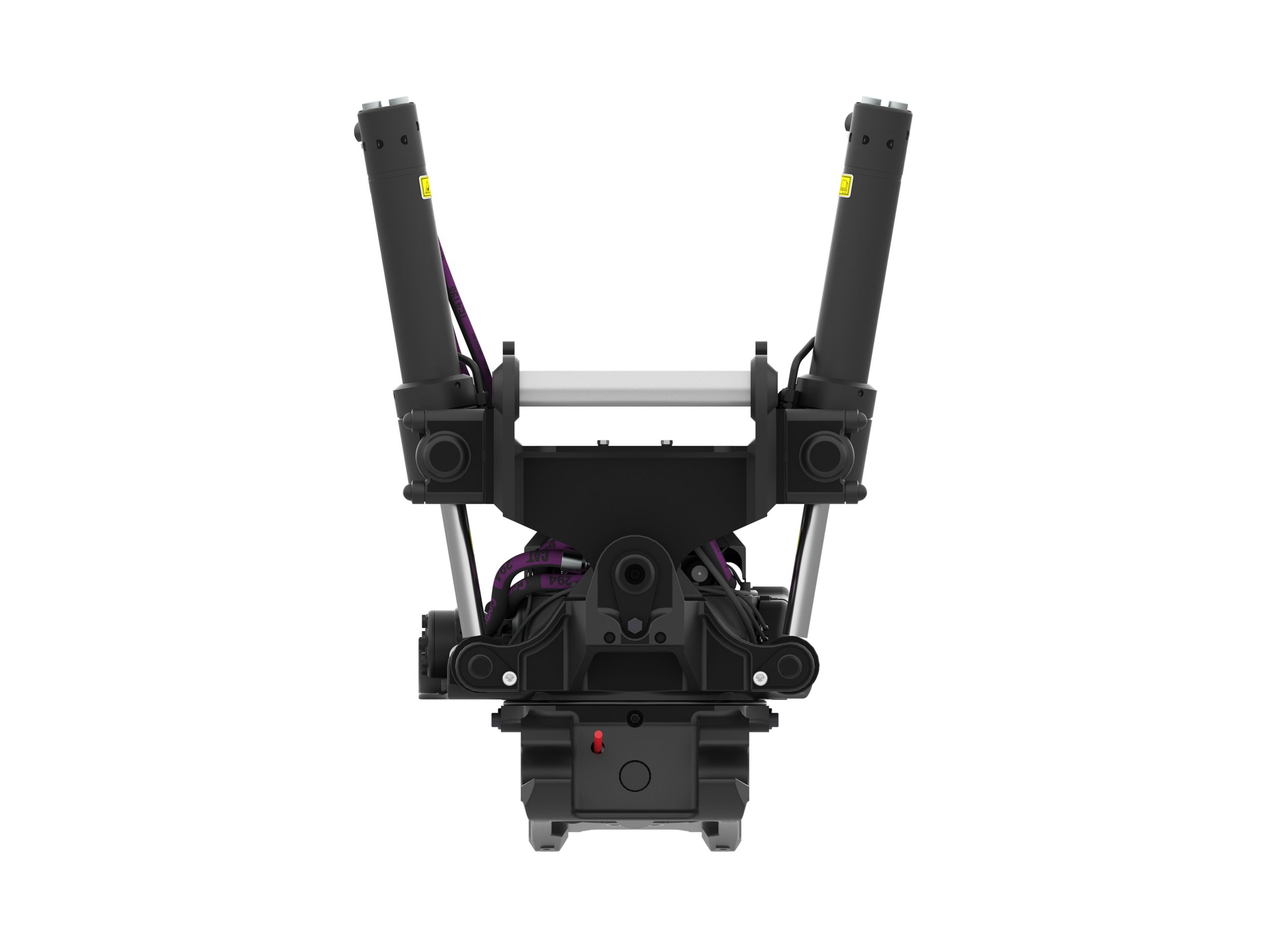 The visual verification indicator allows the operator to visibly confirm, from the cab, that the coupler has successfully locked the attachment into place properly.